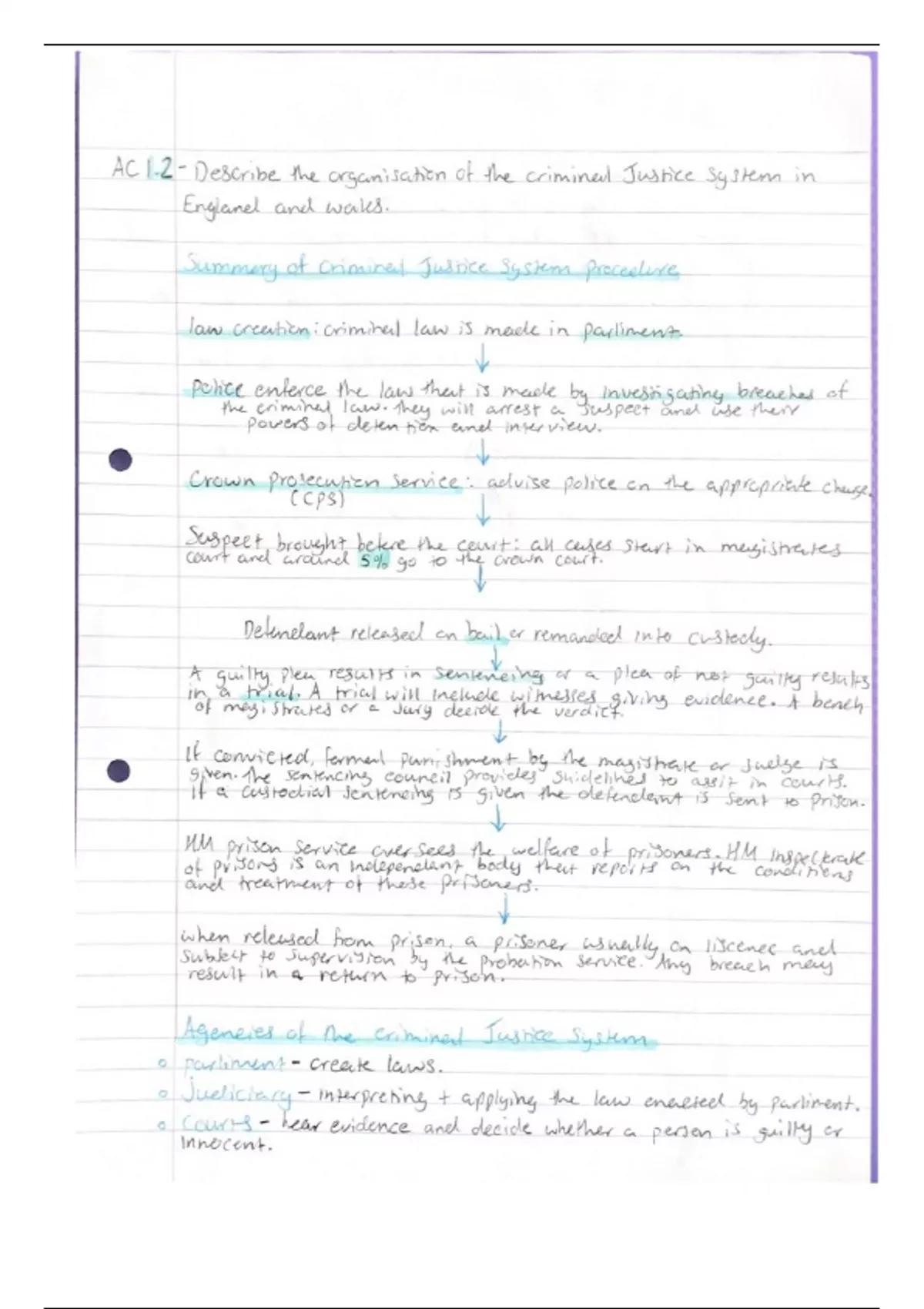 Summary WJEC Criminology Unit 4 - AC 1.2 Criminal justice system & relationships