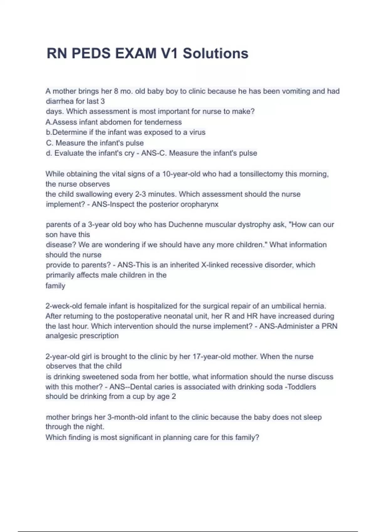 A mother brings her 8 mo. old baby boy to clinic because he has been vomiting and had