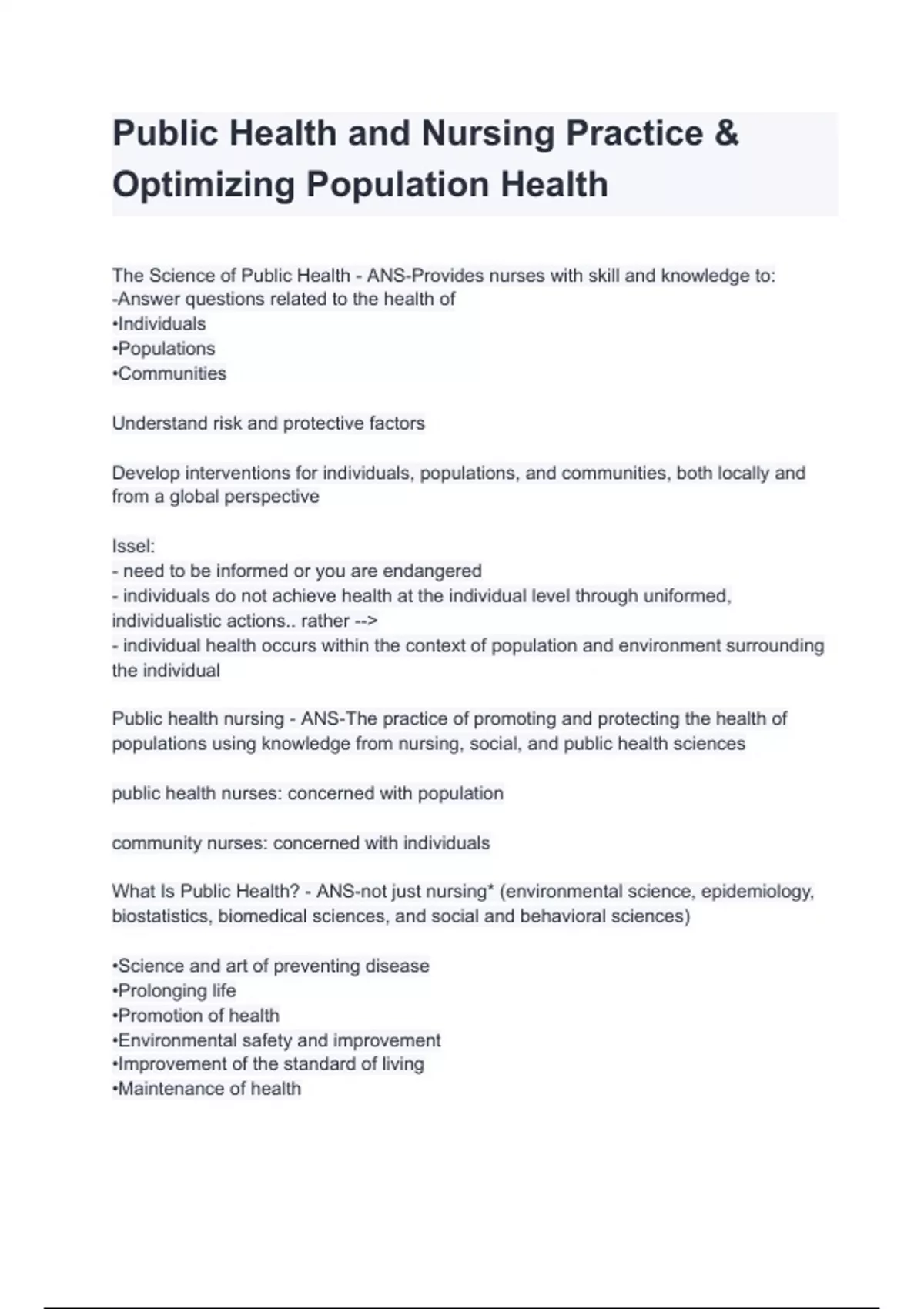 Public Health and Nursing Practice &