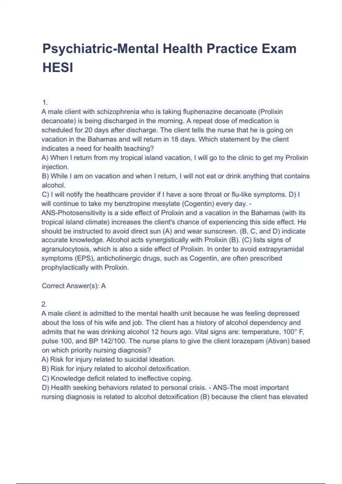 accurate knowledge. Alcohol acts synergistically with Prolixin (B). (C) lists signs of