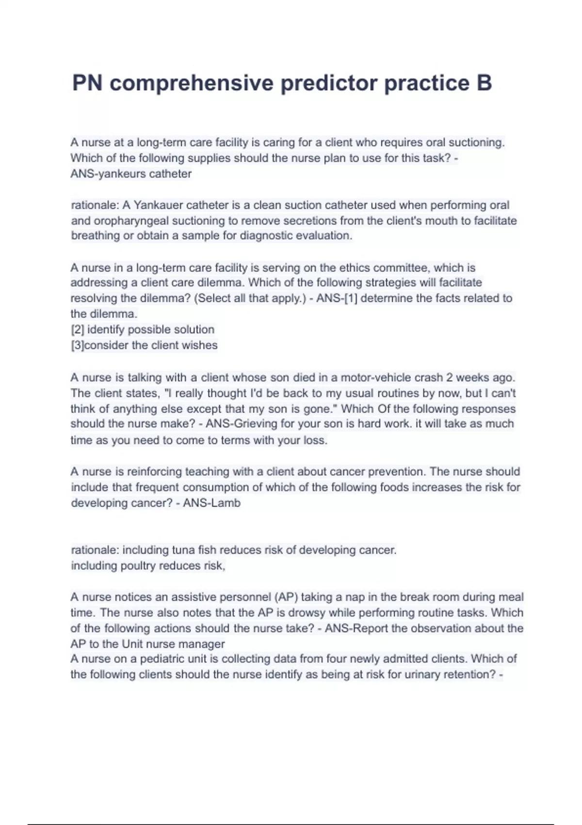 PN comprehensive predictor practice B