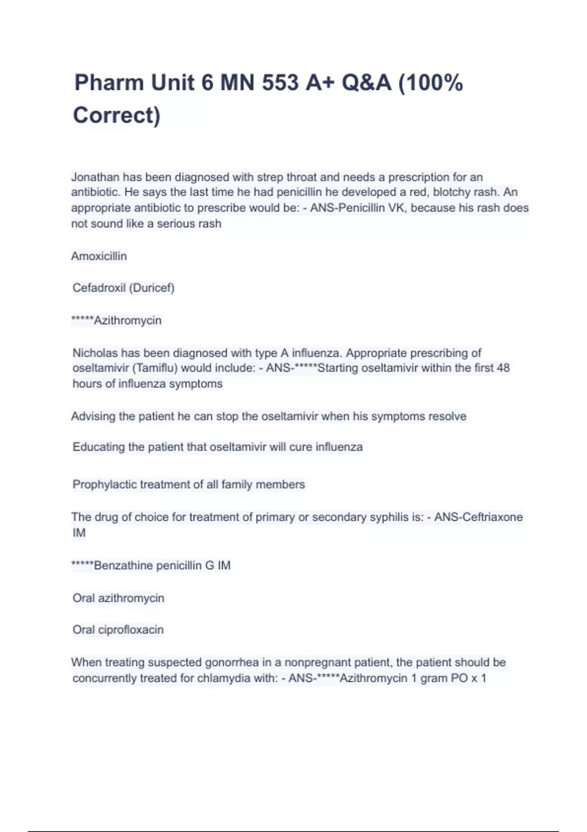 Pharm Unit 6 MN 553 A+ Q&A (100% Correct)