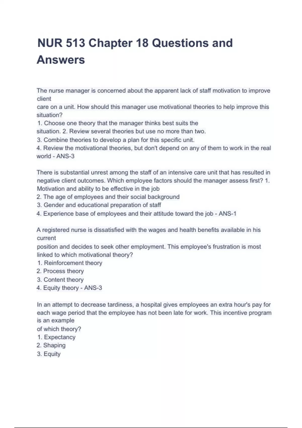 NUR 513 Chapter 18 Questions and