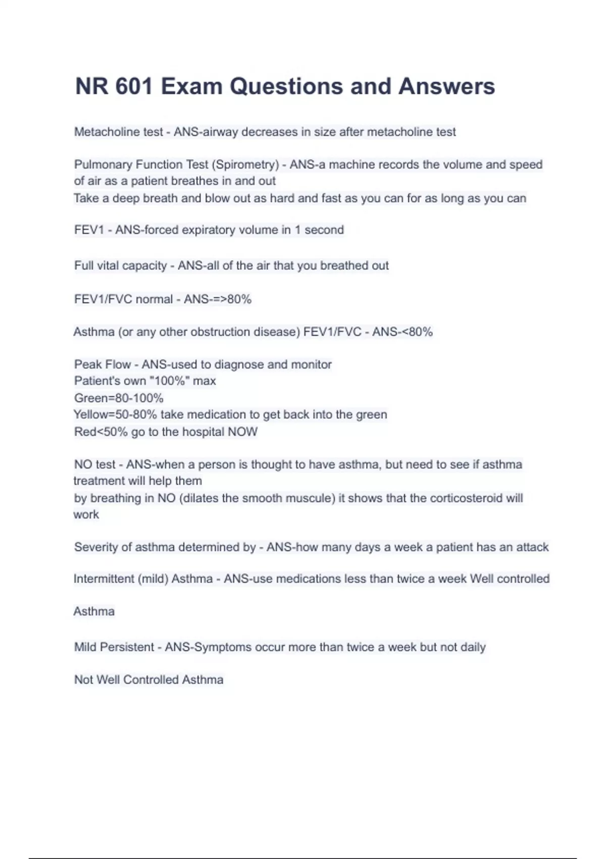 NR 601 Exam Questions and Answers