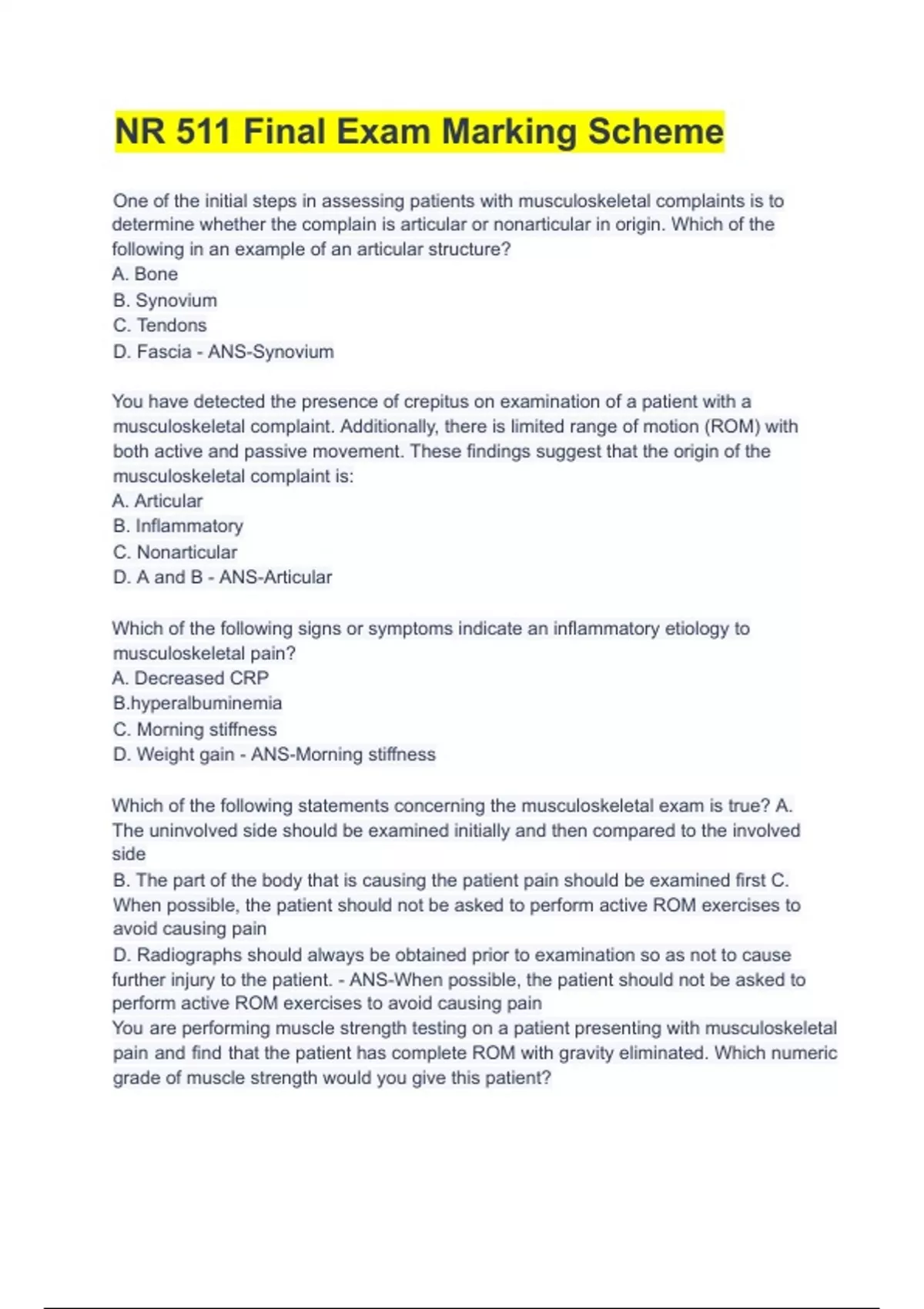 Which of the following statements concerning the musculoskeletal exam is true? A.