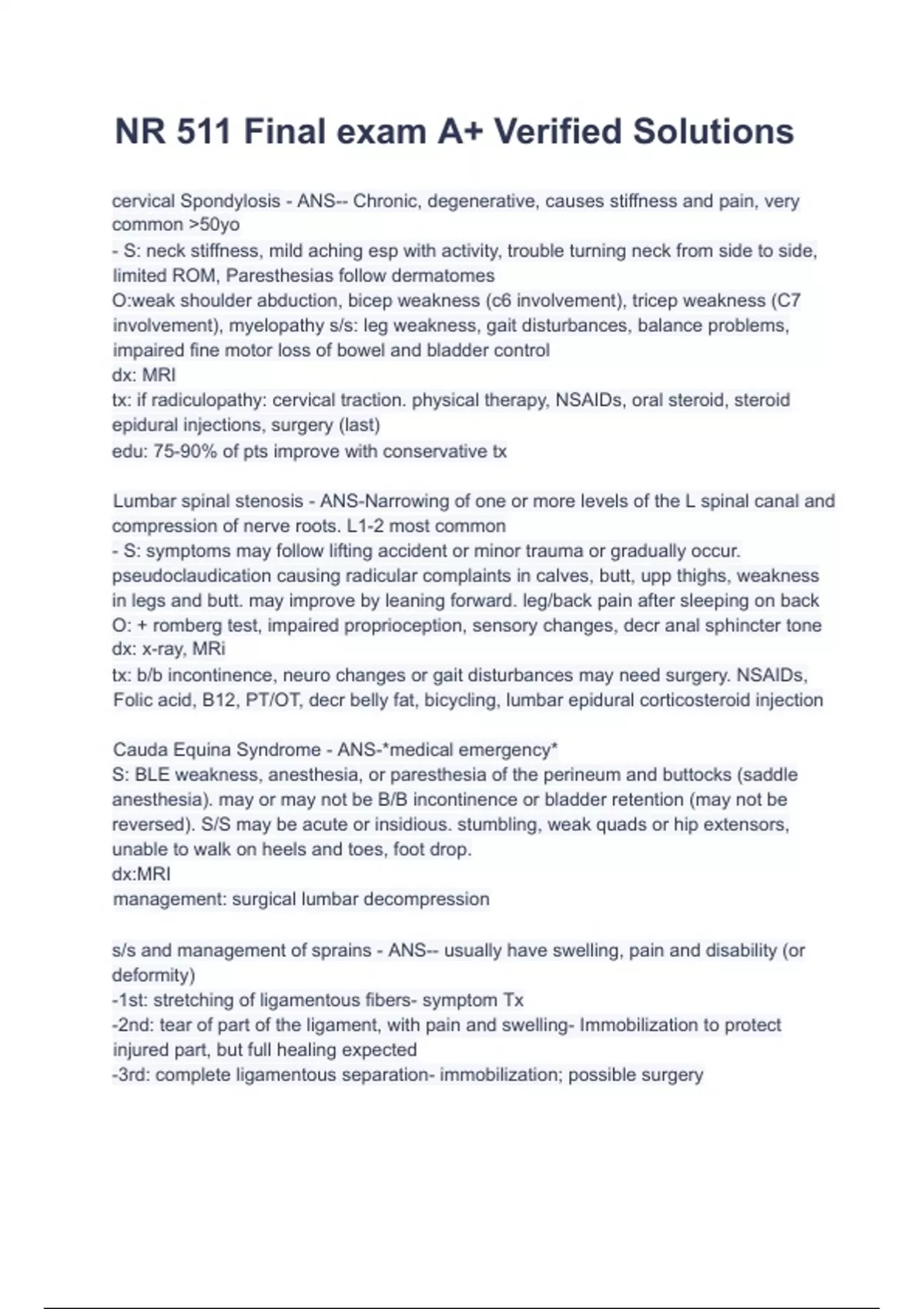 cervical Spondylosis - ANS-- Chronic, degenerative, causes stiffness and pain, very