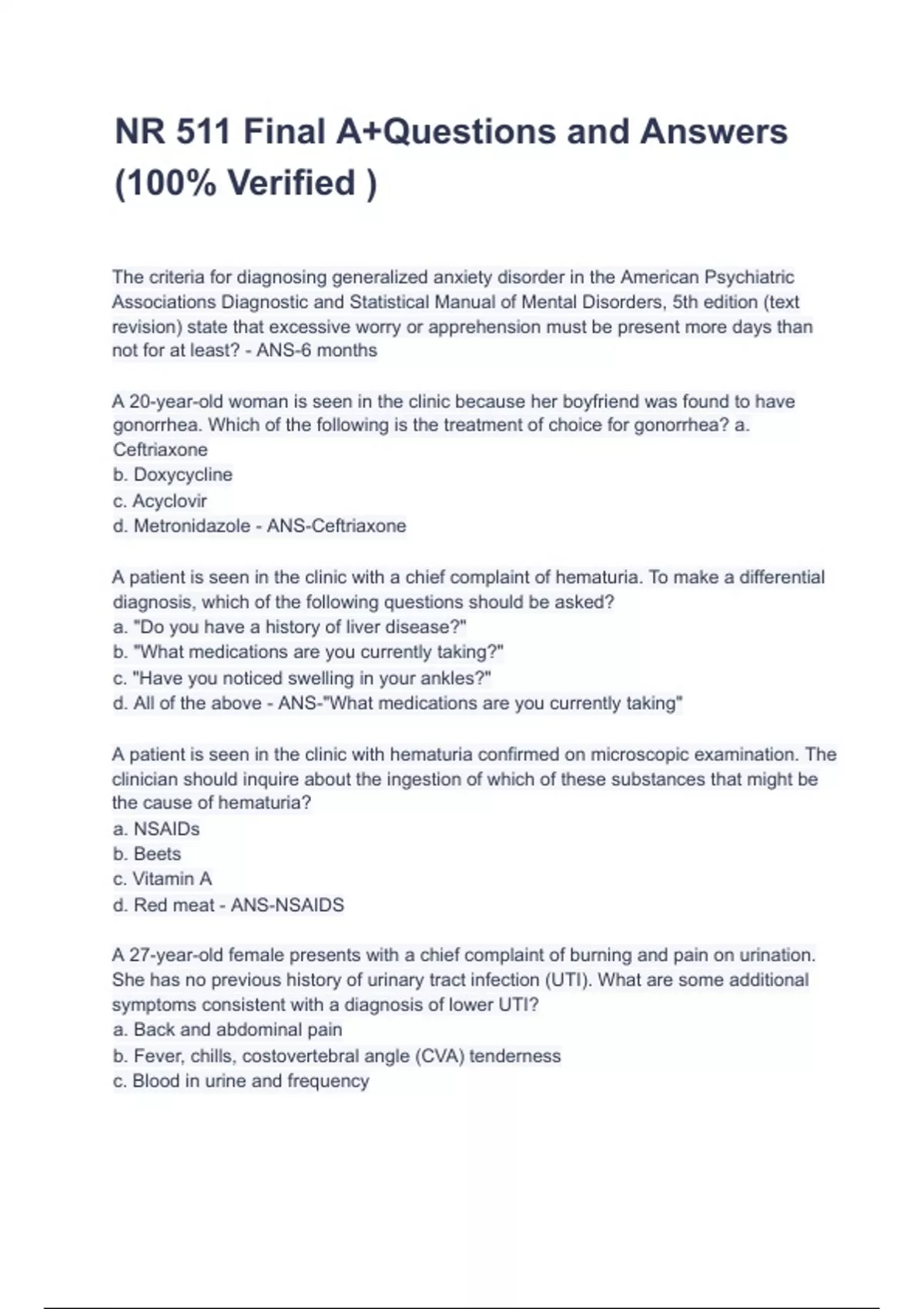 NR 511 Final A+Questions and Answers