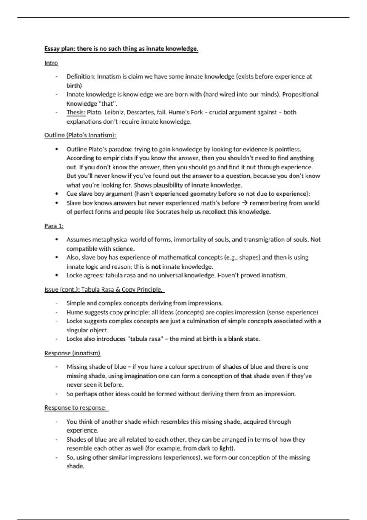 AQA A LEVEL PHILOSOPHY Essay Plans - EPISTEMOLOGY A* Level Essay Plans which are concise and easy to understand. Written by a student predicted 4A*, with an offer to study Philosophy & Economics at the LSE. Very helpful to write a top grade essay.