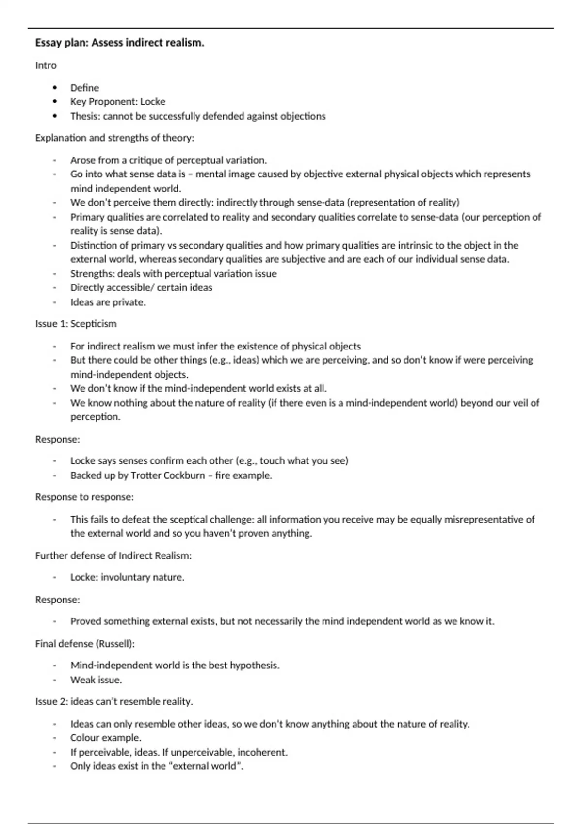 - We don’t perceive them directly: indirectly through sense-data (representation of reality)