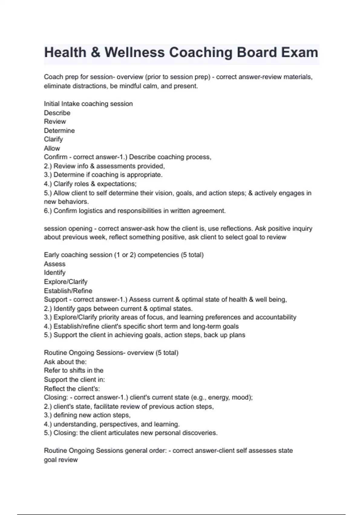 Health & Wellness Coaching Board Exam Questions with 100% Actual correct answers | verified | latest update | Graded A+ | Already Passed | Complete Solution