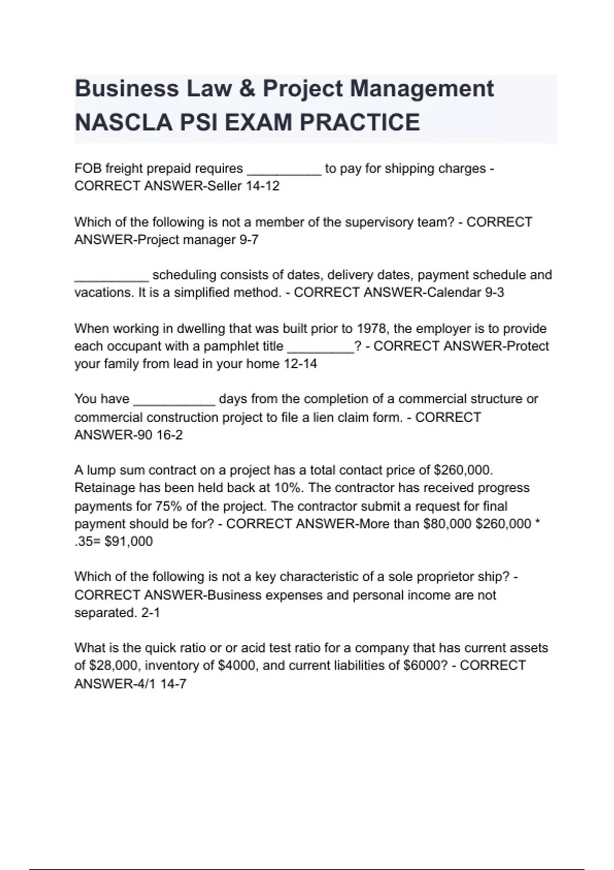 Business Law & Project Management NASCLA PSI EXAM PRACTICE Questions with 100% Actual correct answers | verified | latest update | Graded A+ | Already Passed | Complete Solution