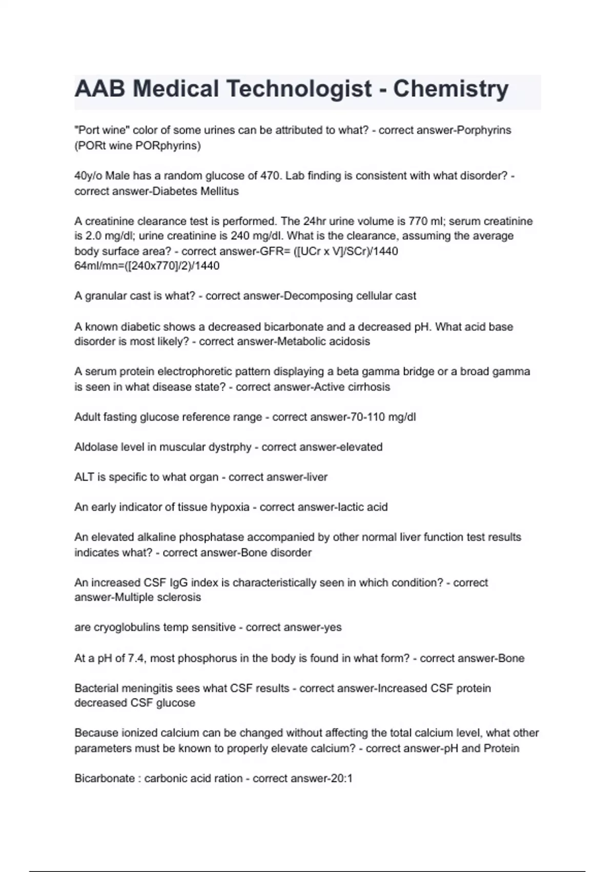 AAB Medical Technologist - Chemistry questions and answers.