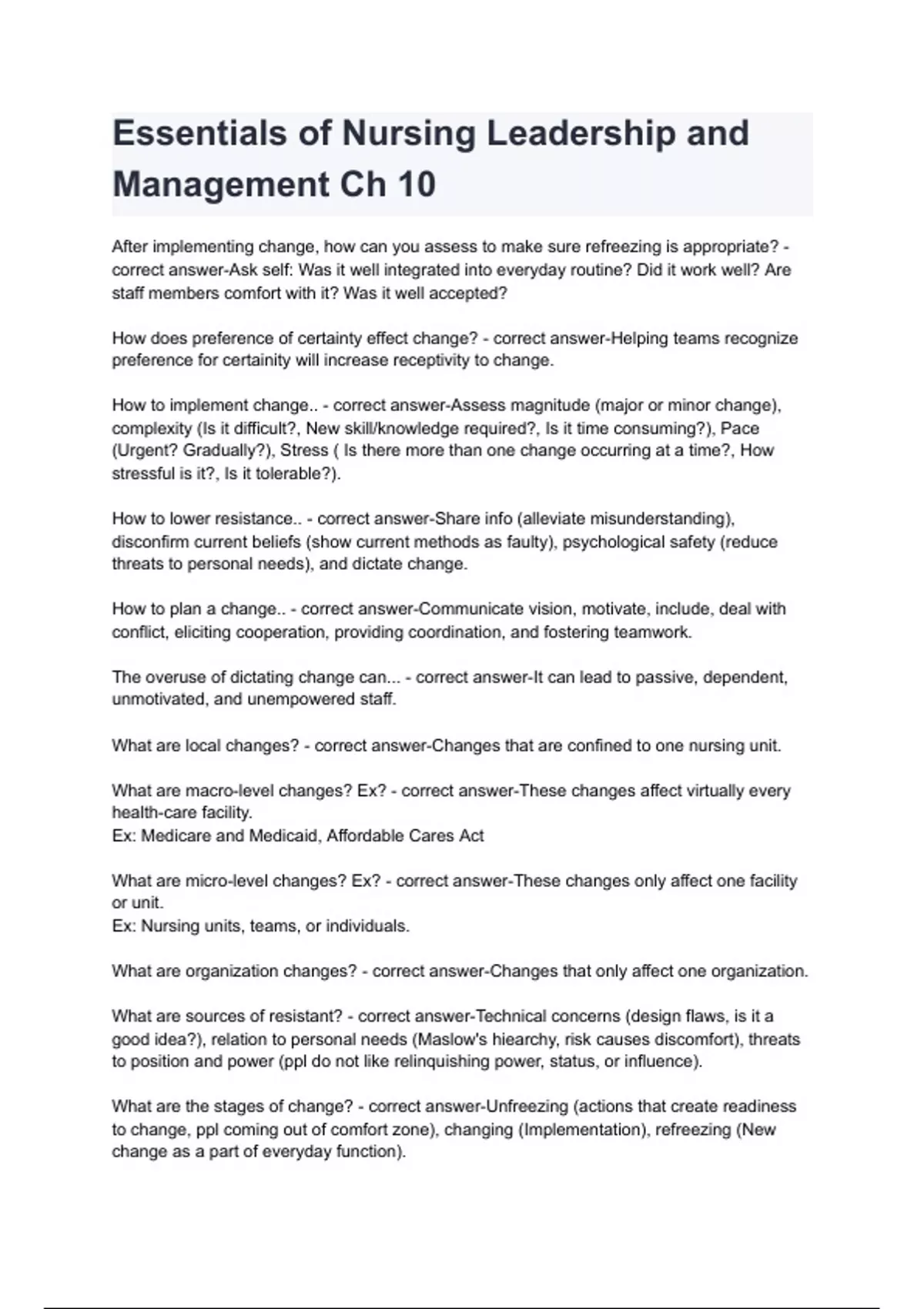 Essentials of Nursing Leadership and Management Ch 10 questions and and answers