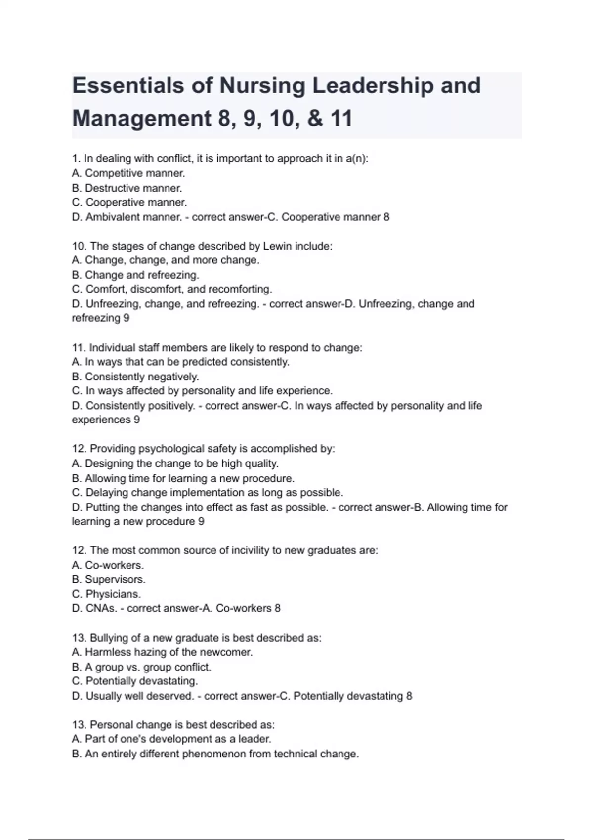 D. Change is never welcome. - correct answer-B. It moves people out of there comfort zone