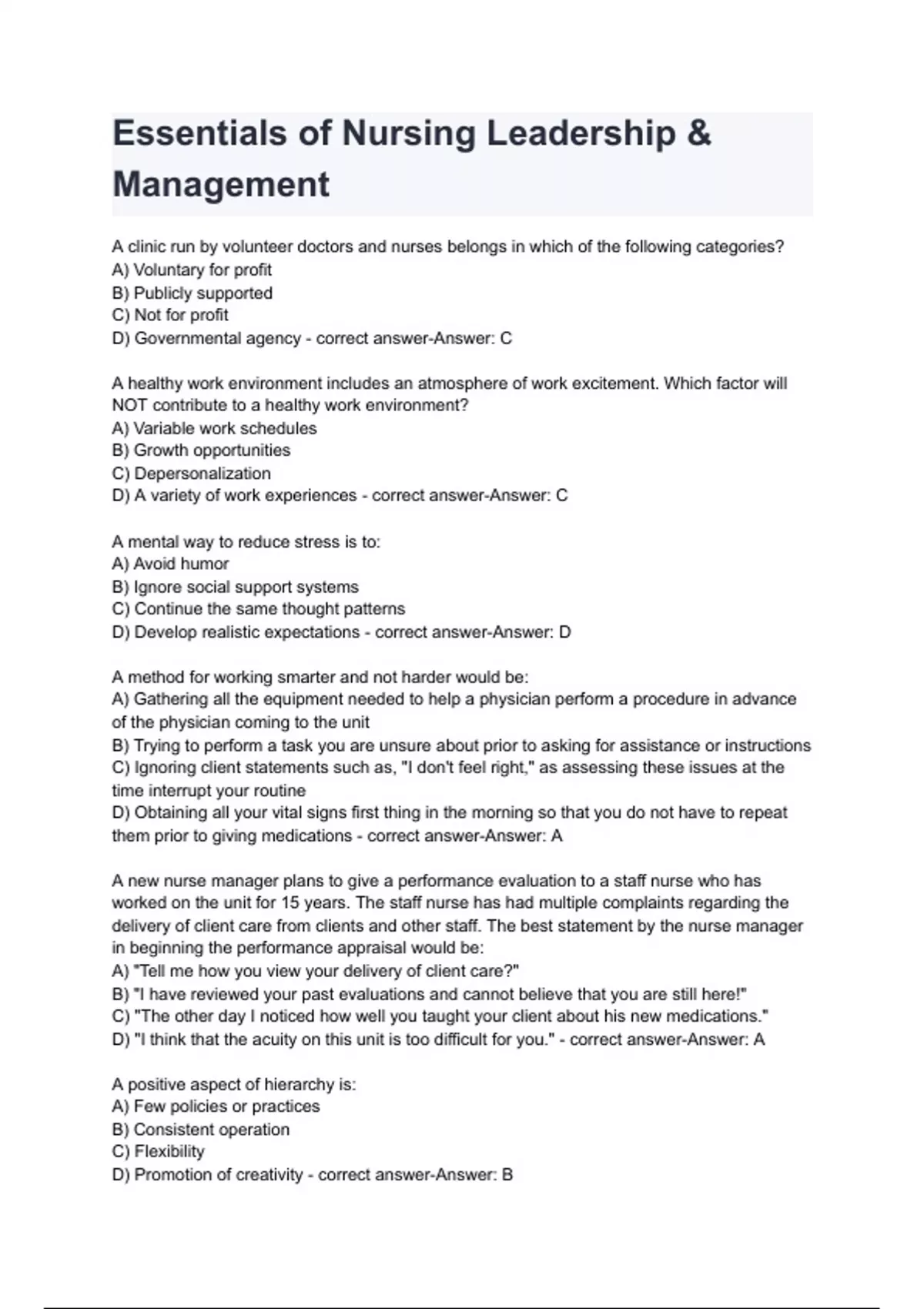 delivery of client care from clients and other staff. The best statement by the nurse manager