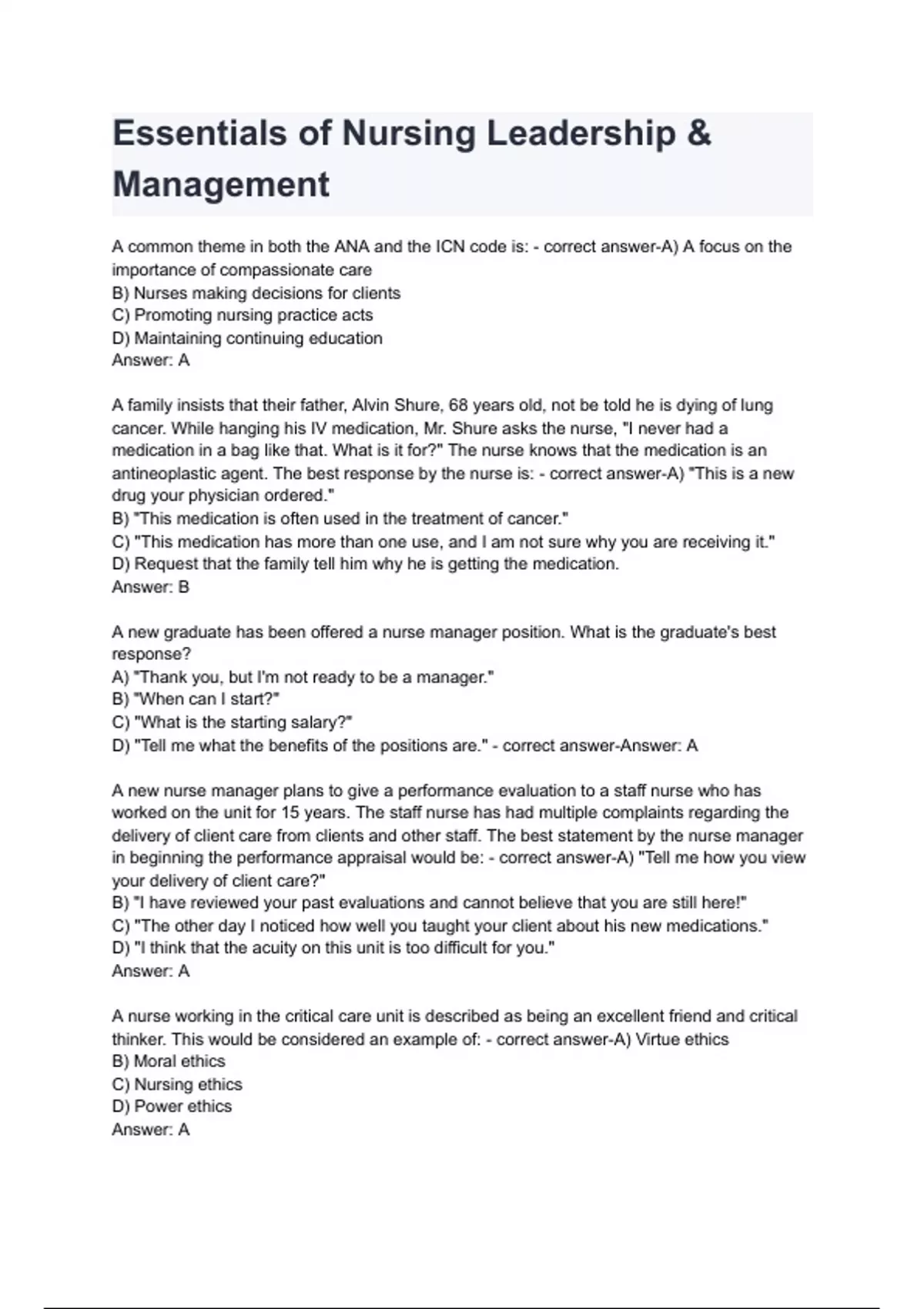Essentials of Nursing Leadership questions and and answers