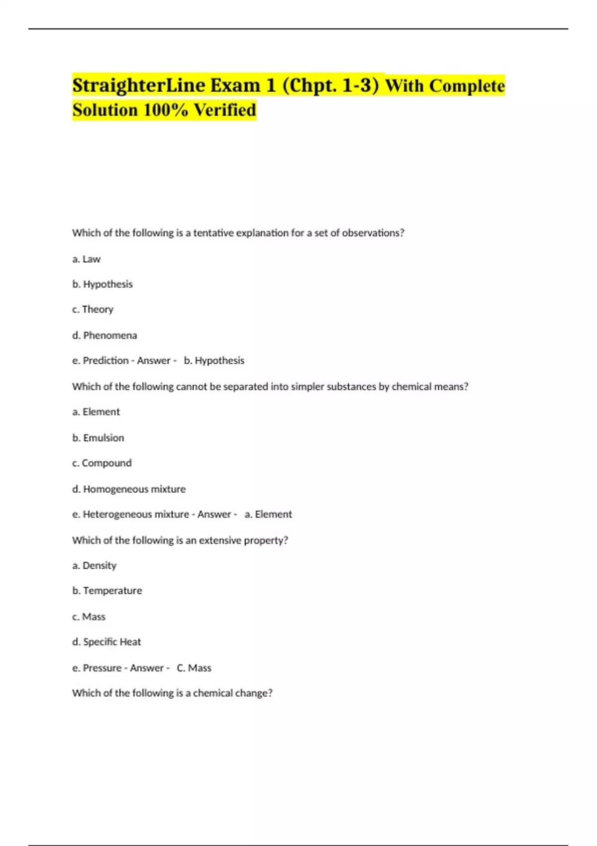 StraighterLine Exam 1 (Chpt. 1-3) With Complete