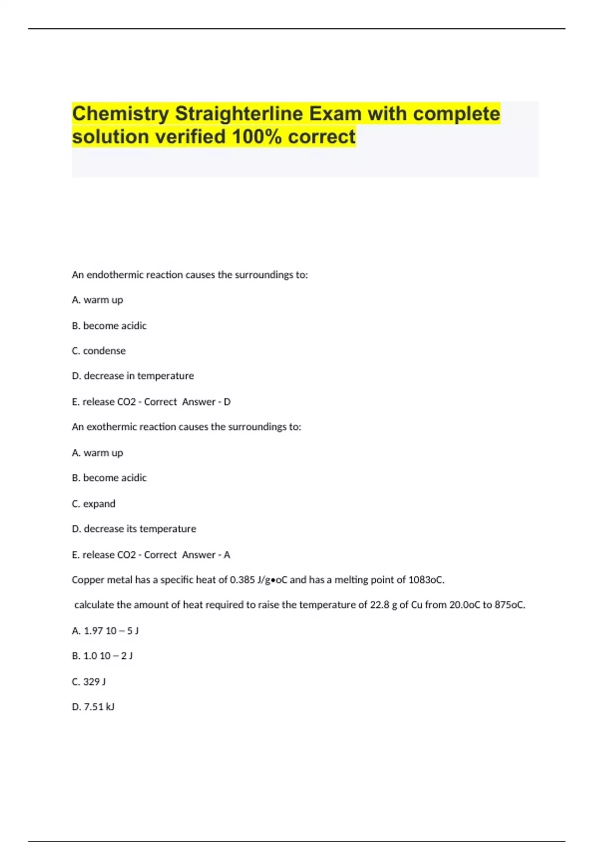 Chemistry Straighterline Exam with complete