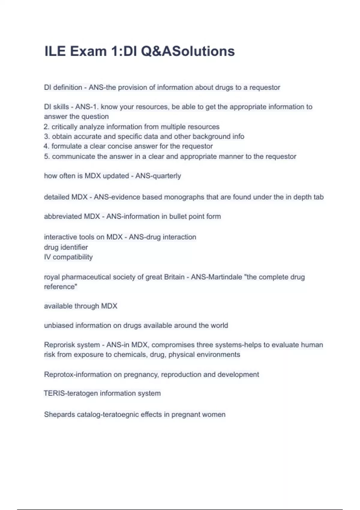 ILE Exam 1:DI Q&ASolutions