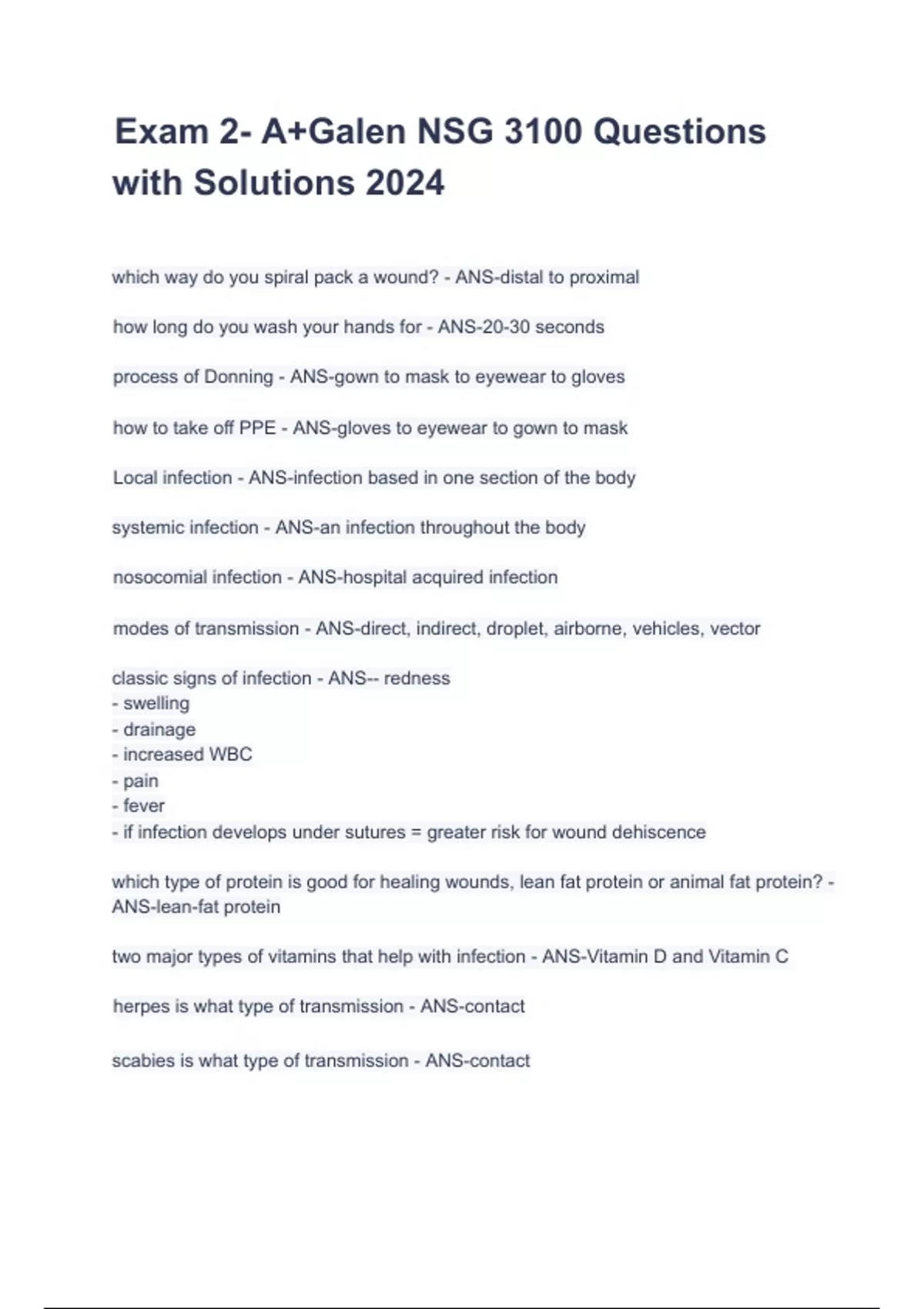 Exam 2- A+Galen NSG 3100 Questions