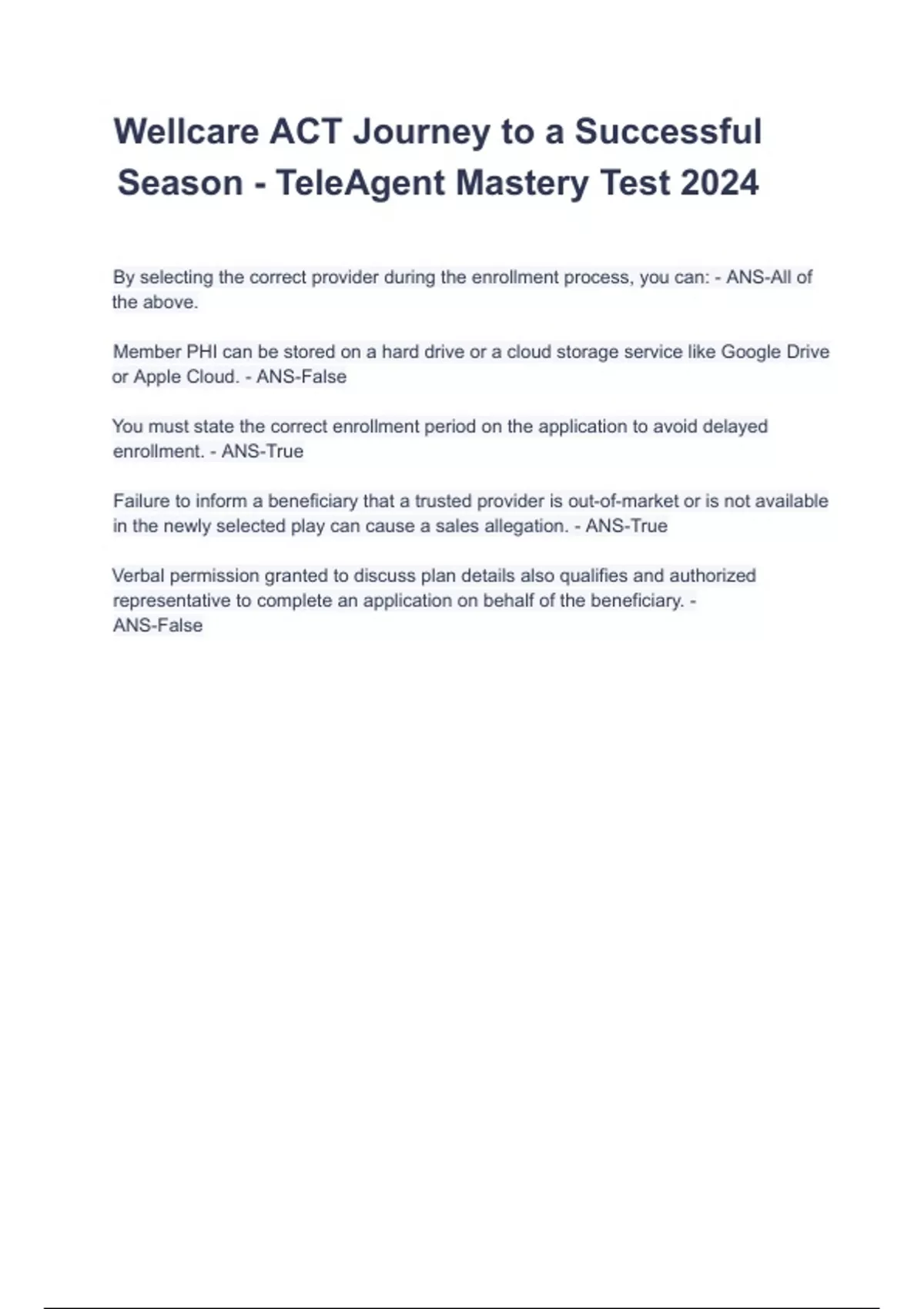 Wellcare ACT Journey to a Successful Season - TeleAgent Mastery Test 2024 (1).