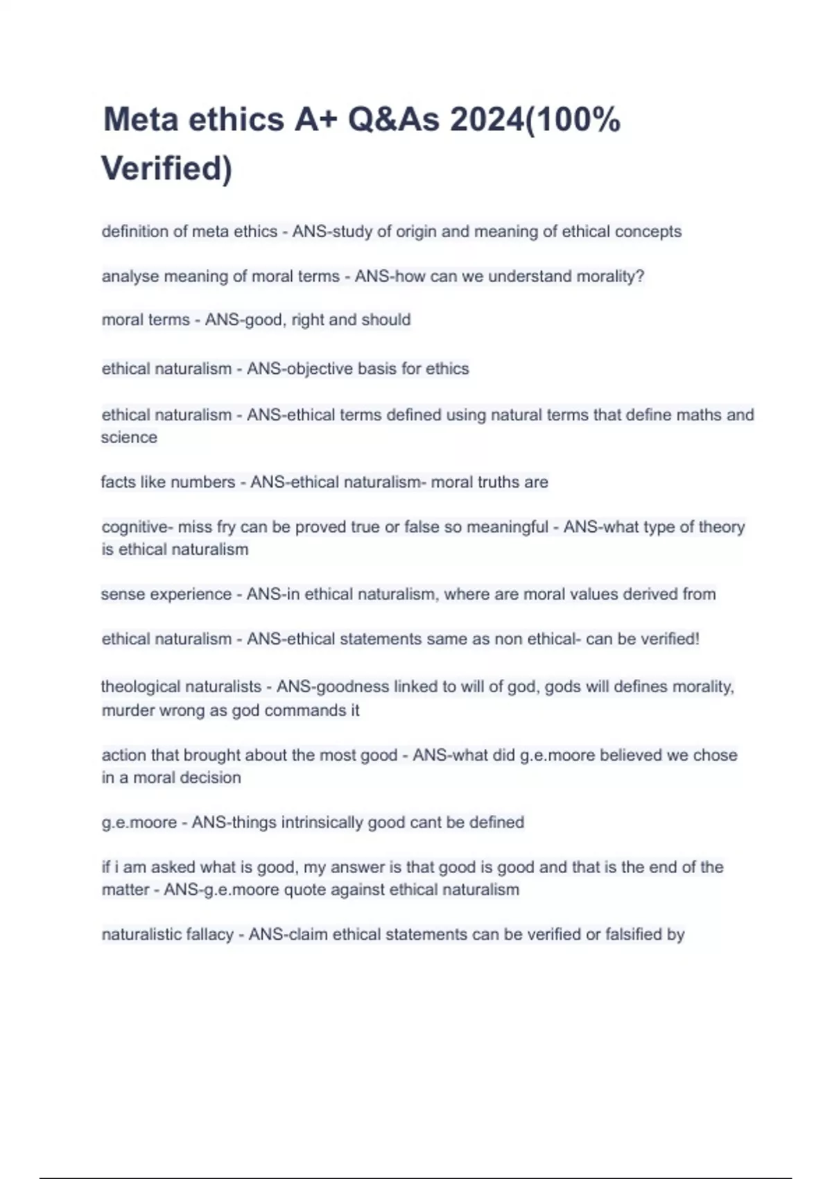 Meta ethics A+ Q&As 2024(100%