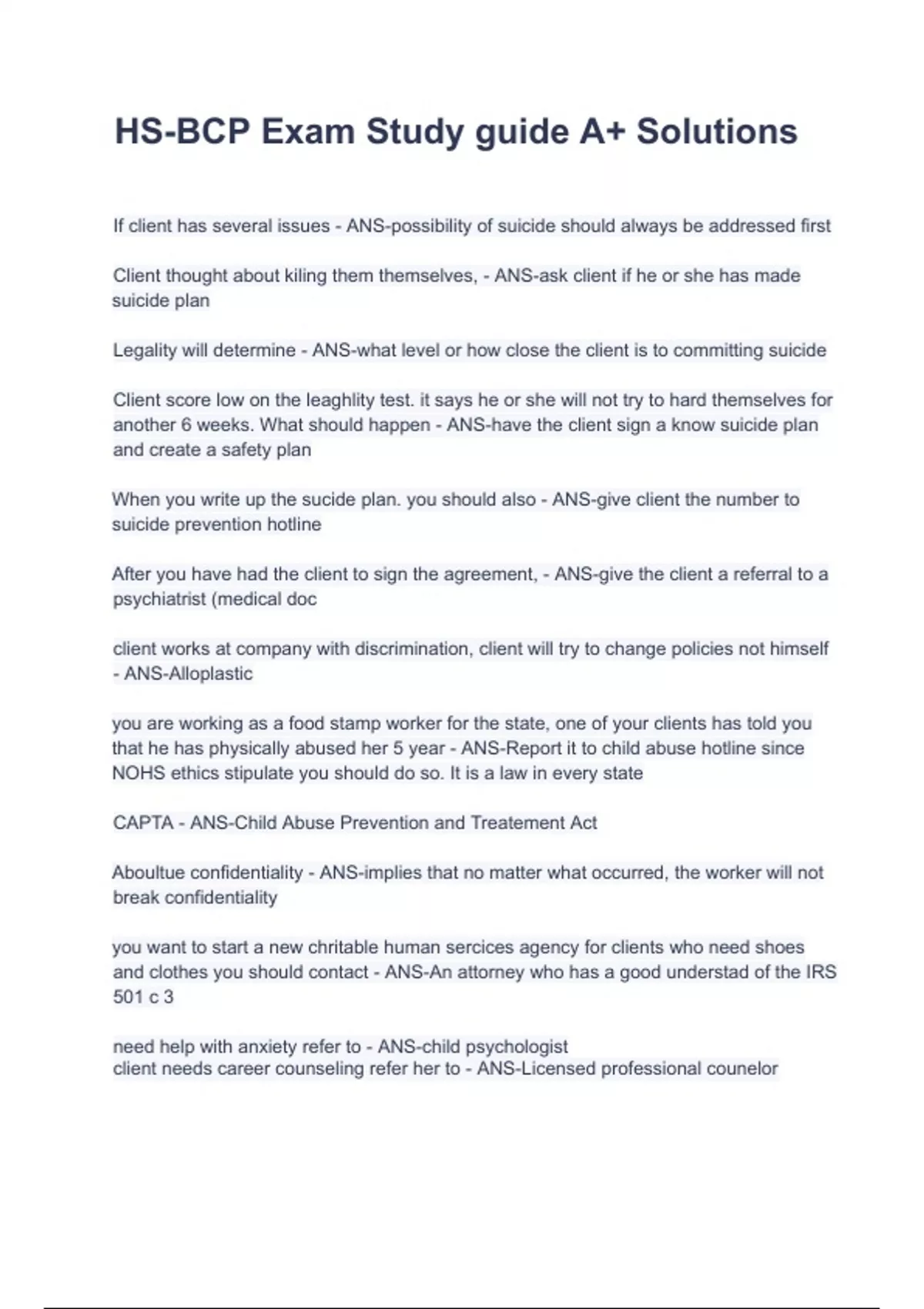 HS-BCP Exam Study guide A+ Solutions .