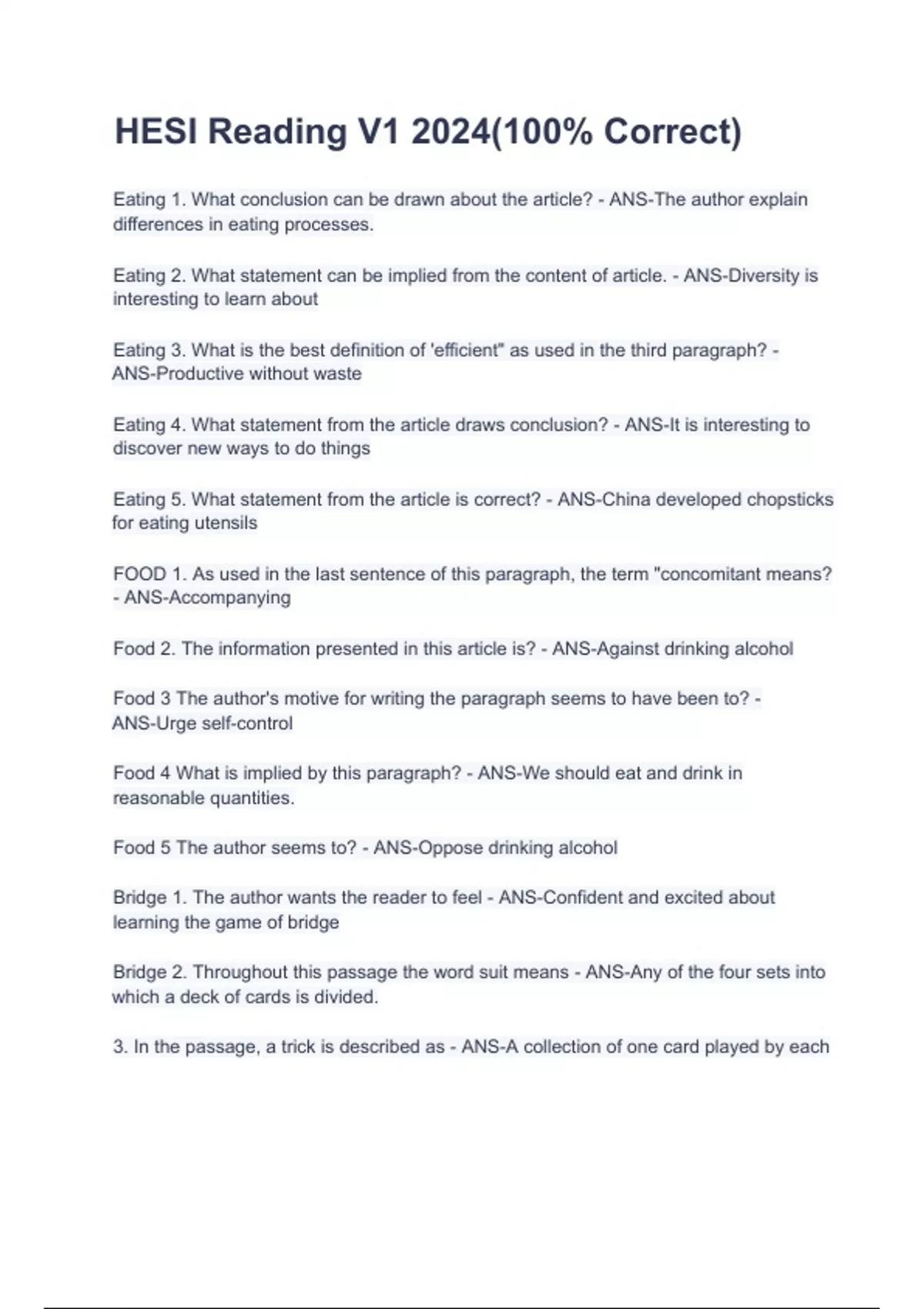 HESI Reading V1 2024(100% Correct)
