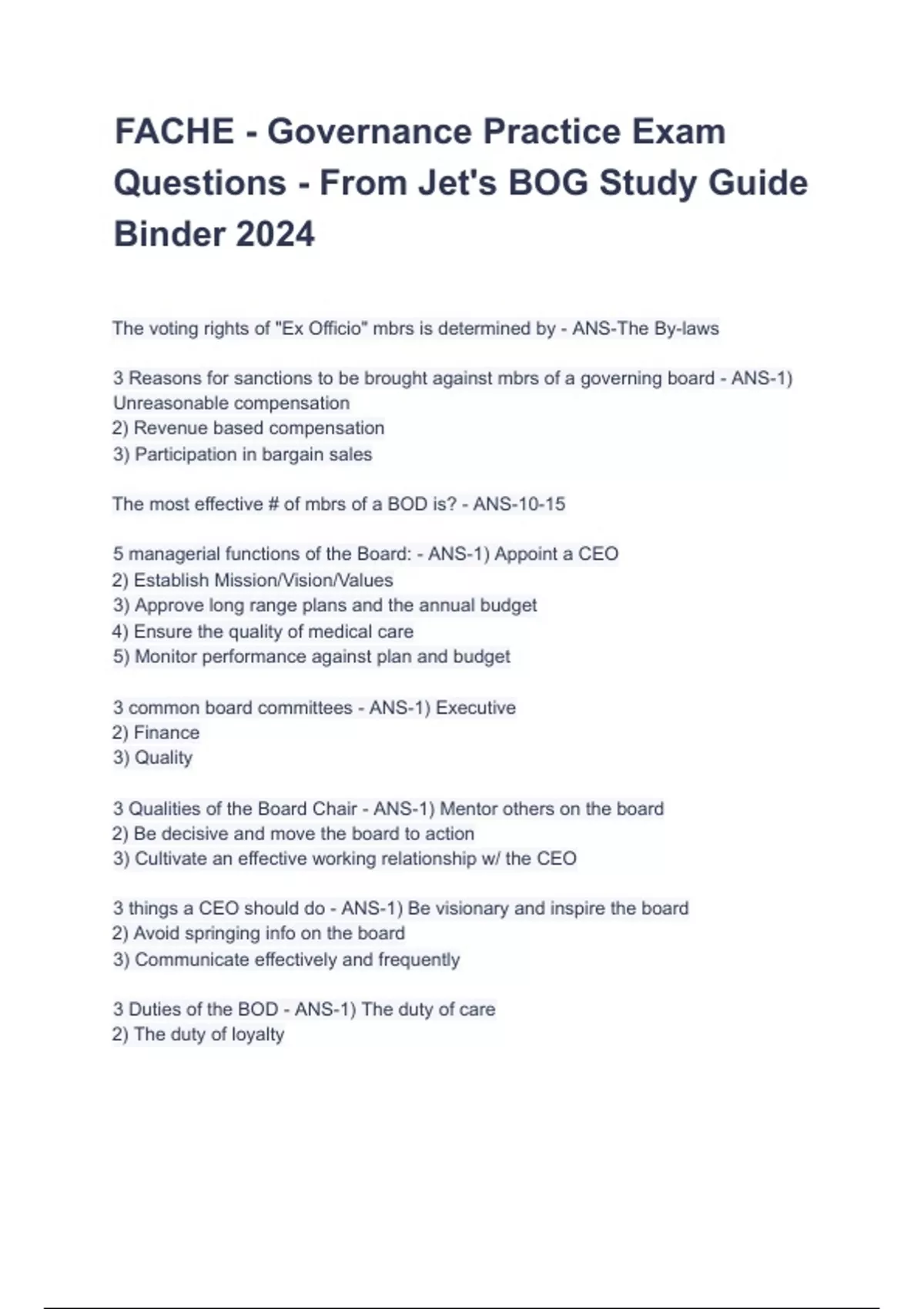 FACHE - Governance Practice Exam