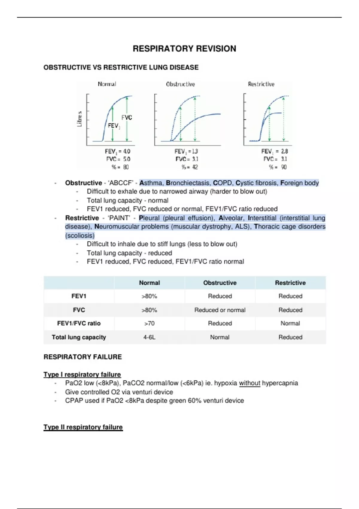 Summary Medical Finals Respiratory Revision - UKMLA