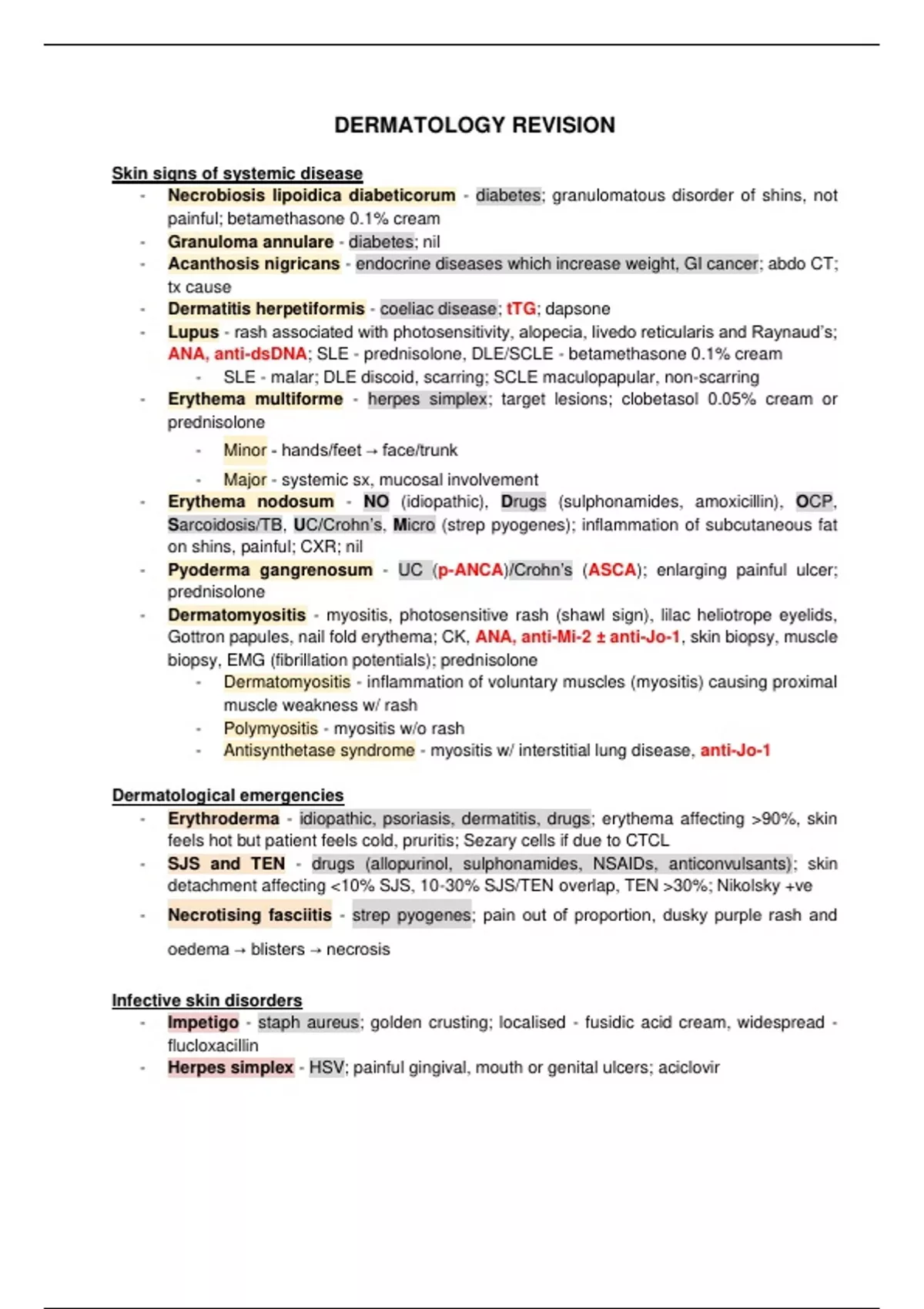 - Erythema nodosum - NO (idiopathic), Drugs (sulphonamides, amoxicillin), OCP,