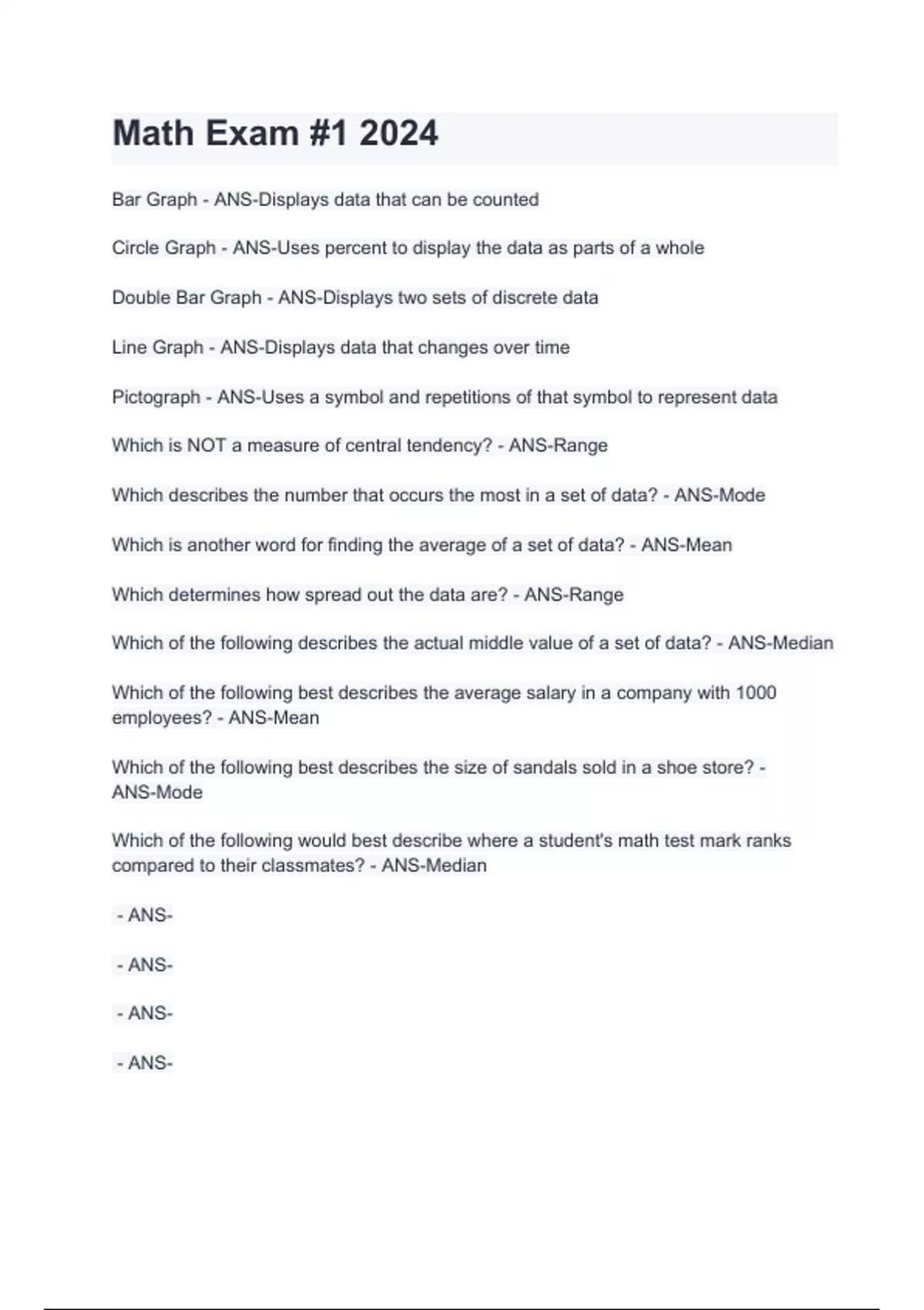 Circle Graph - ANS-Uses percent to display the data as parts of a whole