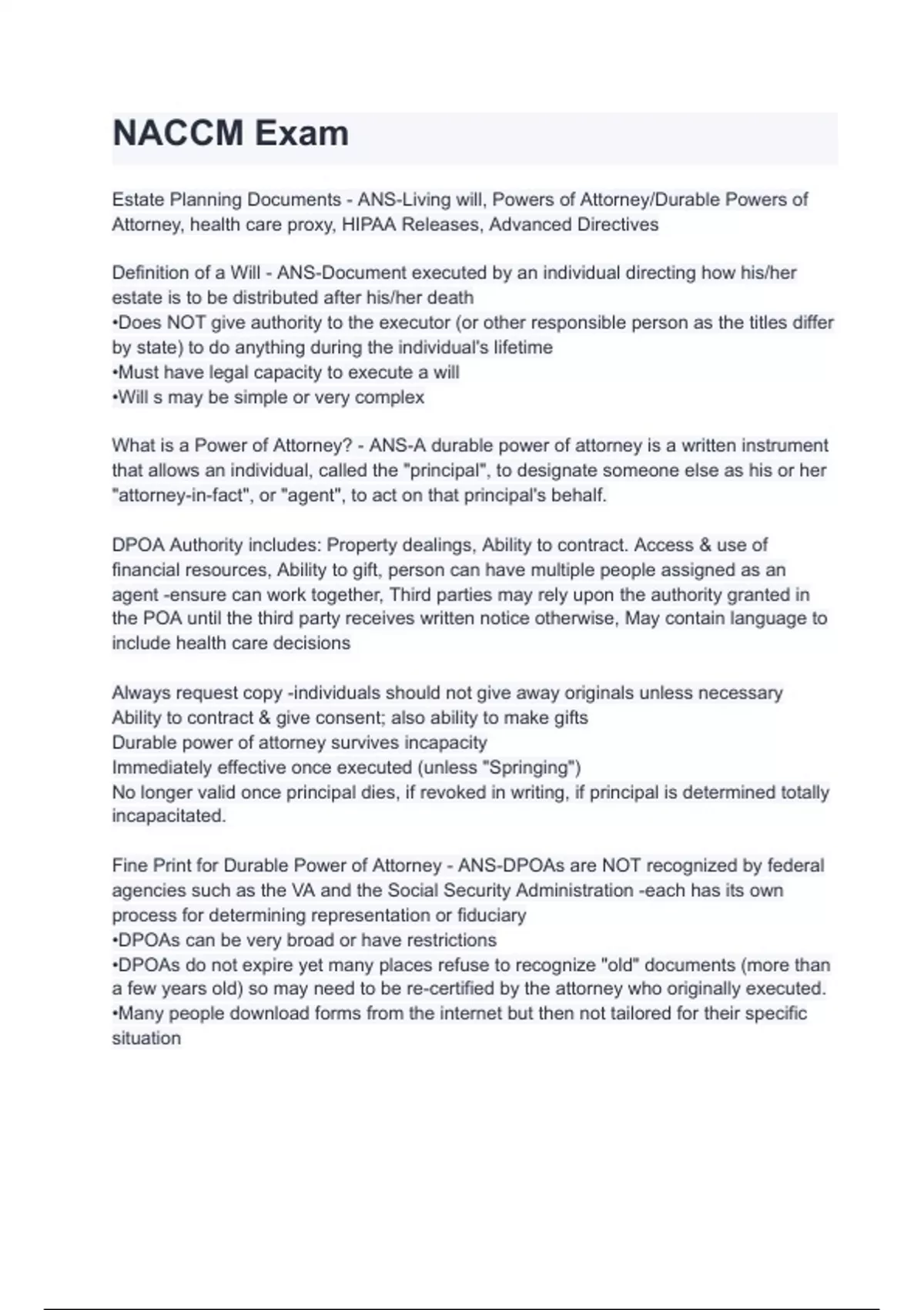What is a Power of Attorney? - ANS-A durable power of attorney is a written instrument