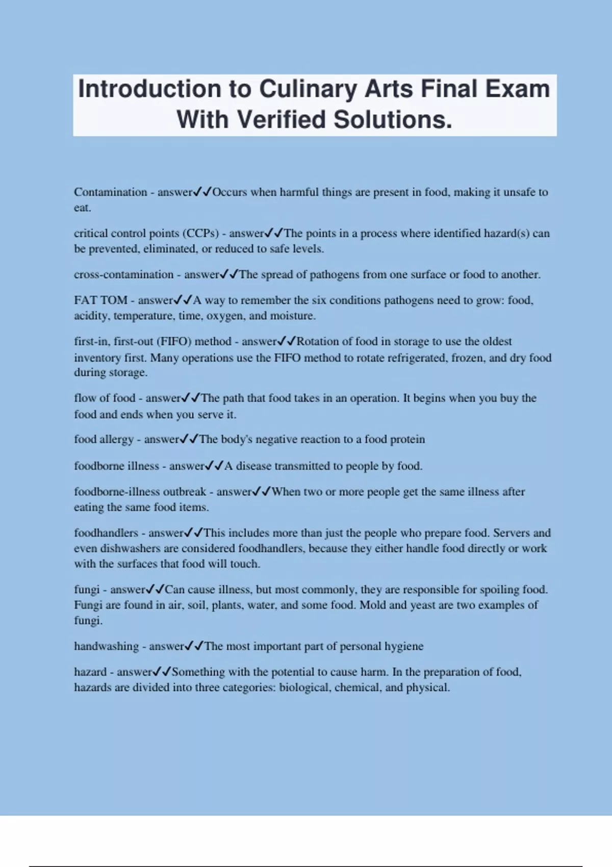 Introduction to Culinary Arts Final Exam With Verified Solutions.