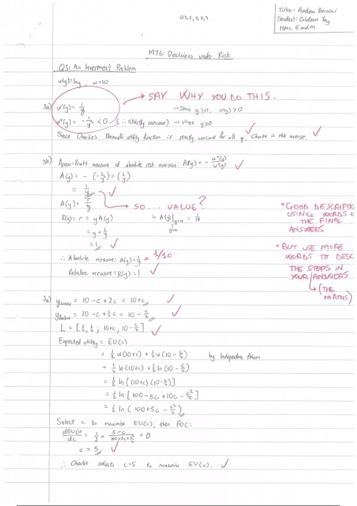 Handwritten solutions for all questions in Problem Set 6: Decisions under risk. For Microeconomics FHS at Oxford University.