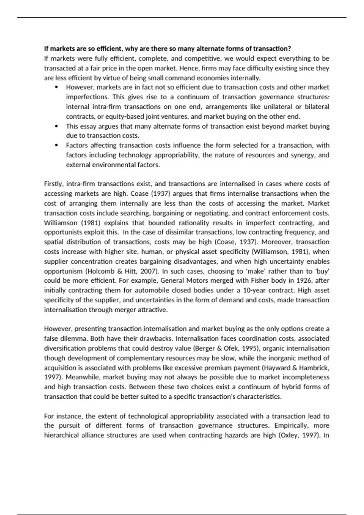 accessing markets are high. Coase (1937) argues that firms internalise transactions when the