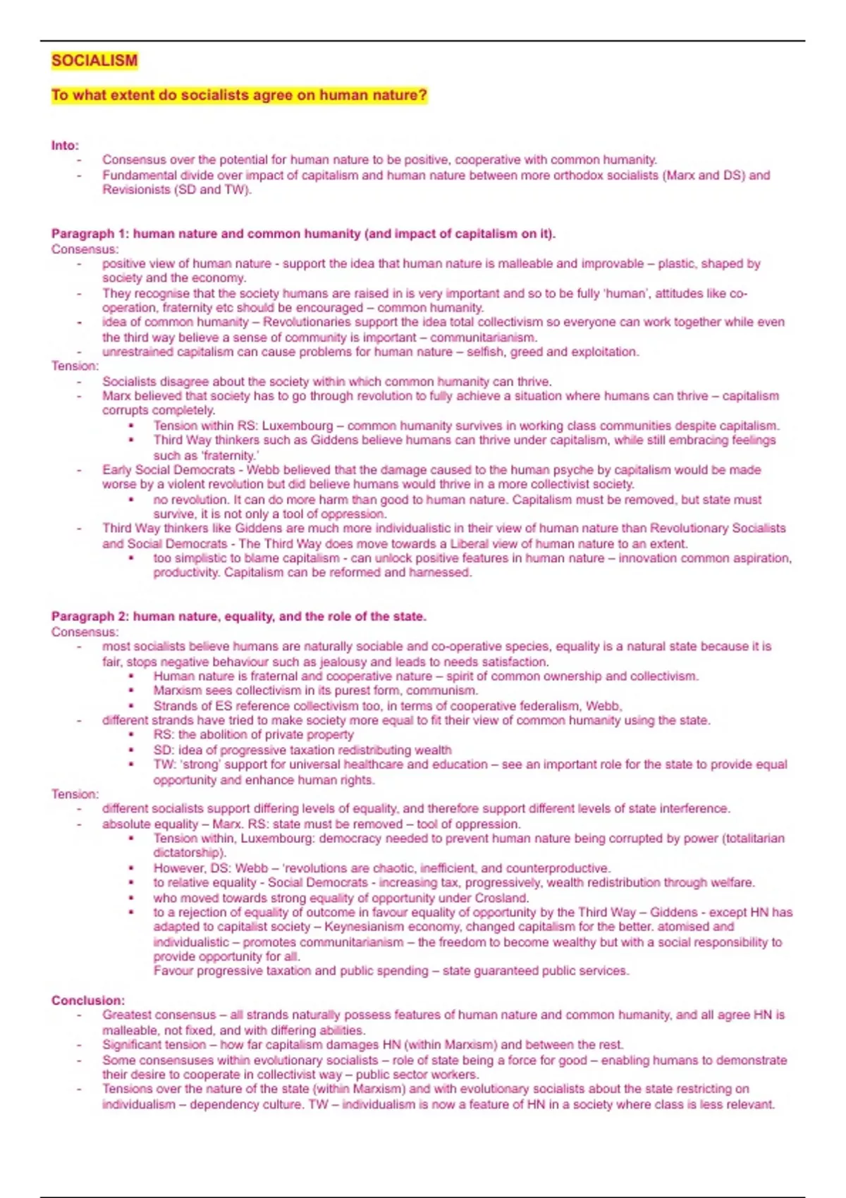 - Significant tension – how far capitalism damages HN (within Marxism) and between the rest.