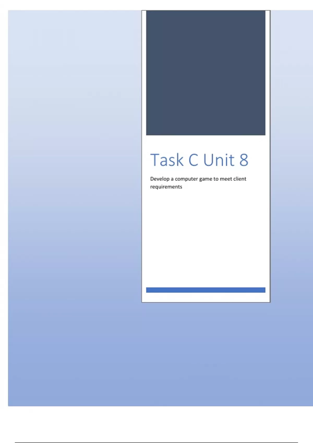 Unit 8 - Computer Games Development Task C *Distinction Work* *Full Assignment* *Student Example Work*
