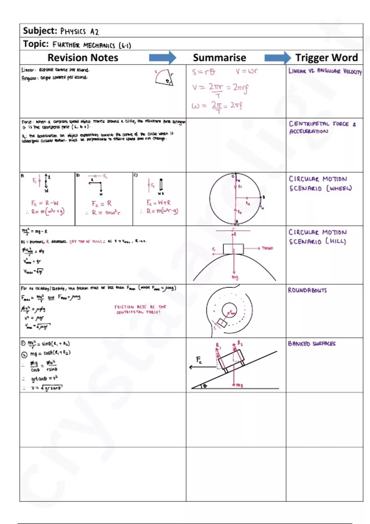 A* level revision trigger word sheet for topic 6.1, Further Mechanics (Simple Harmonic Motion & Uniform Circular Motion), in AQA A-Level Physics. Covers all content in minimised form, perfect for revision.