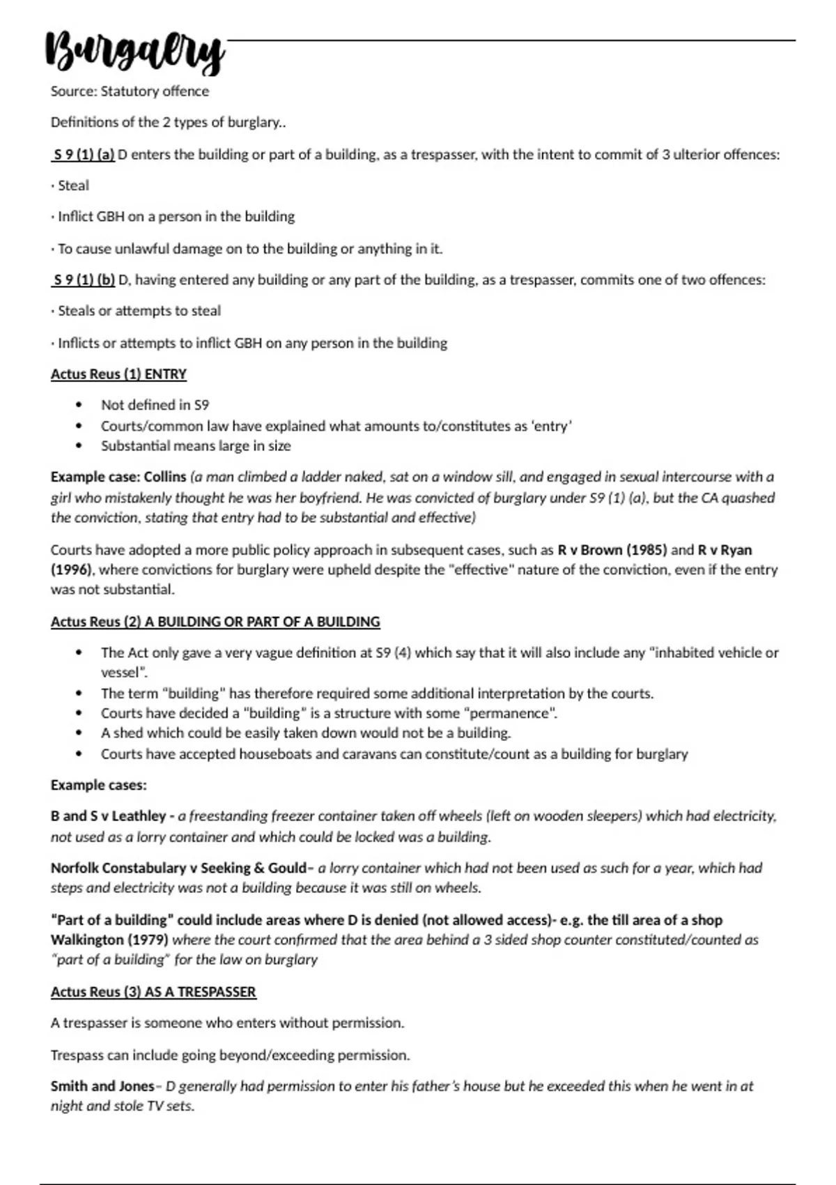 Actus Reus (3) AS A TRESPASSER