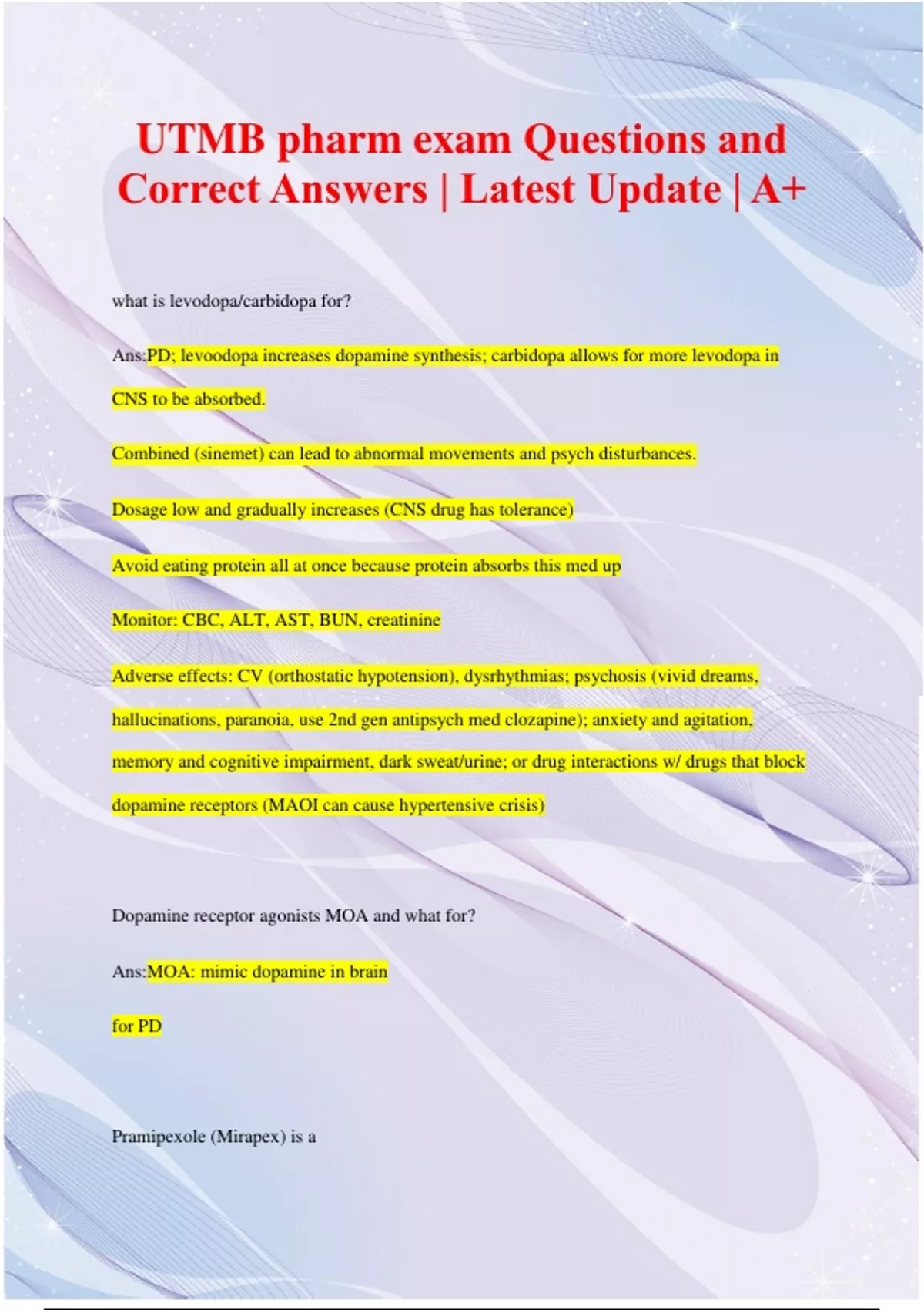 UTMB pharm exam Questions and Correct Answers | Latest Update | A+