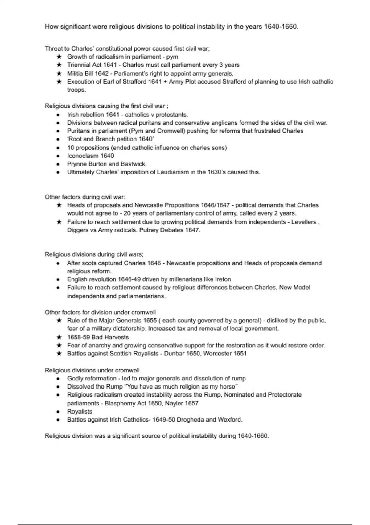 ★ Militia Bill 1642 - Parliament’s right to appoint army generals.
