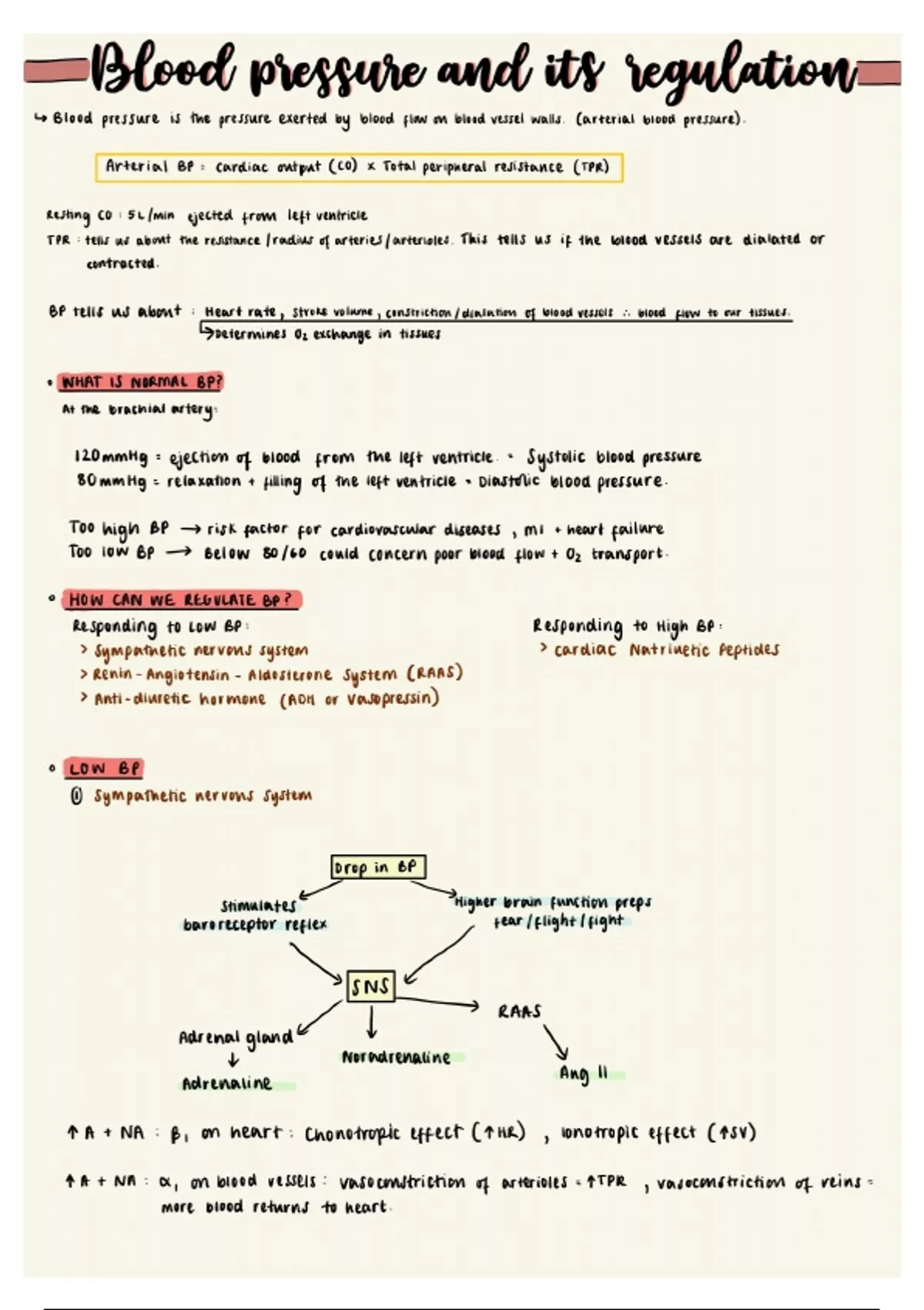 Summary Blood Pressure and its Regulation