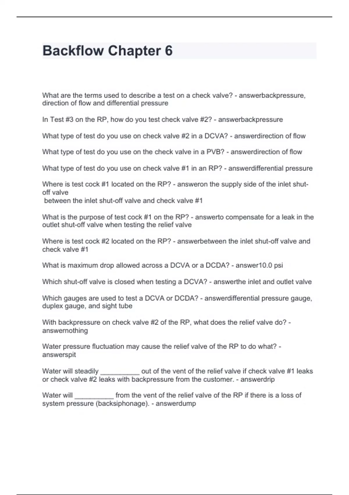 Backflow Chapter 6, Questions and Answers 2024