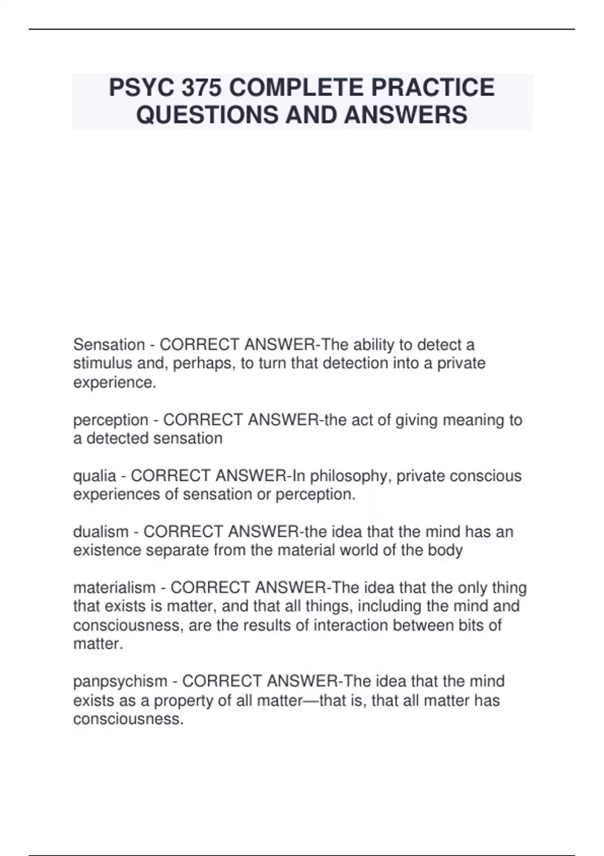 psyc 375 complete practice questions and answers