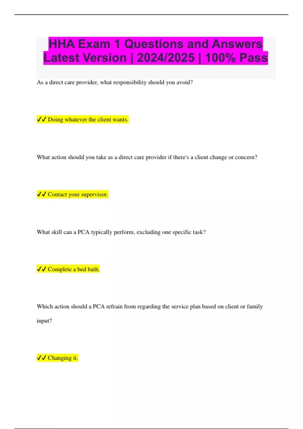 HHA Exam 1 Questions and Answers Latest Version | 2024/2025 | 100% Pass
