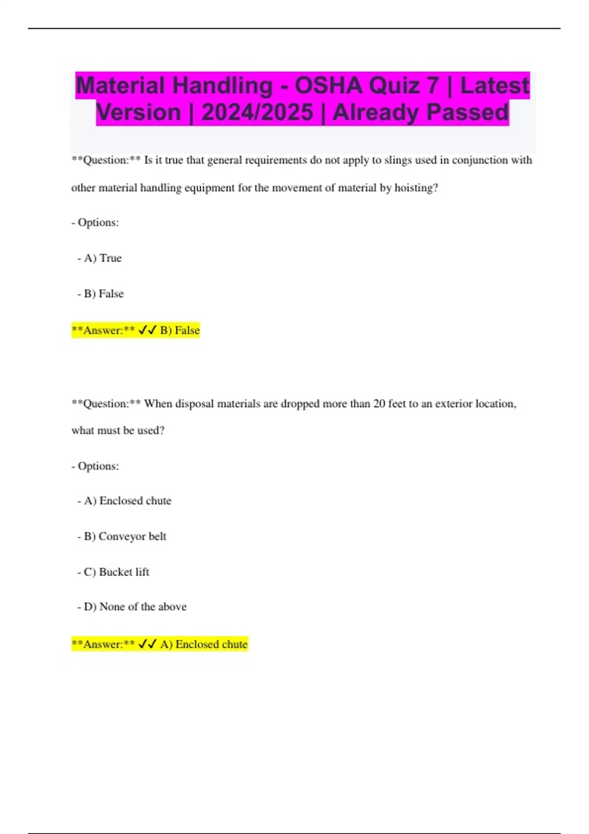 Material Handling - OSHA Quiz 7 | Latest Version | 2024/2025 | Already Passed