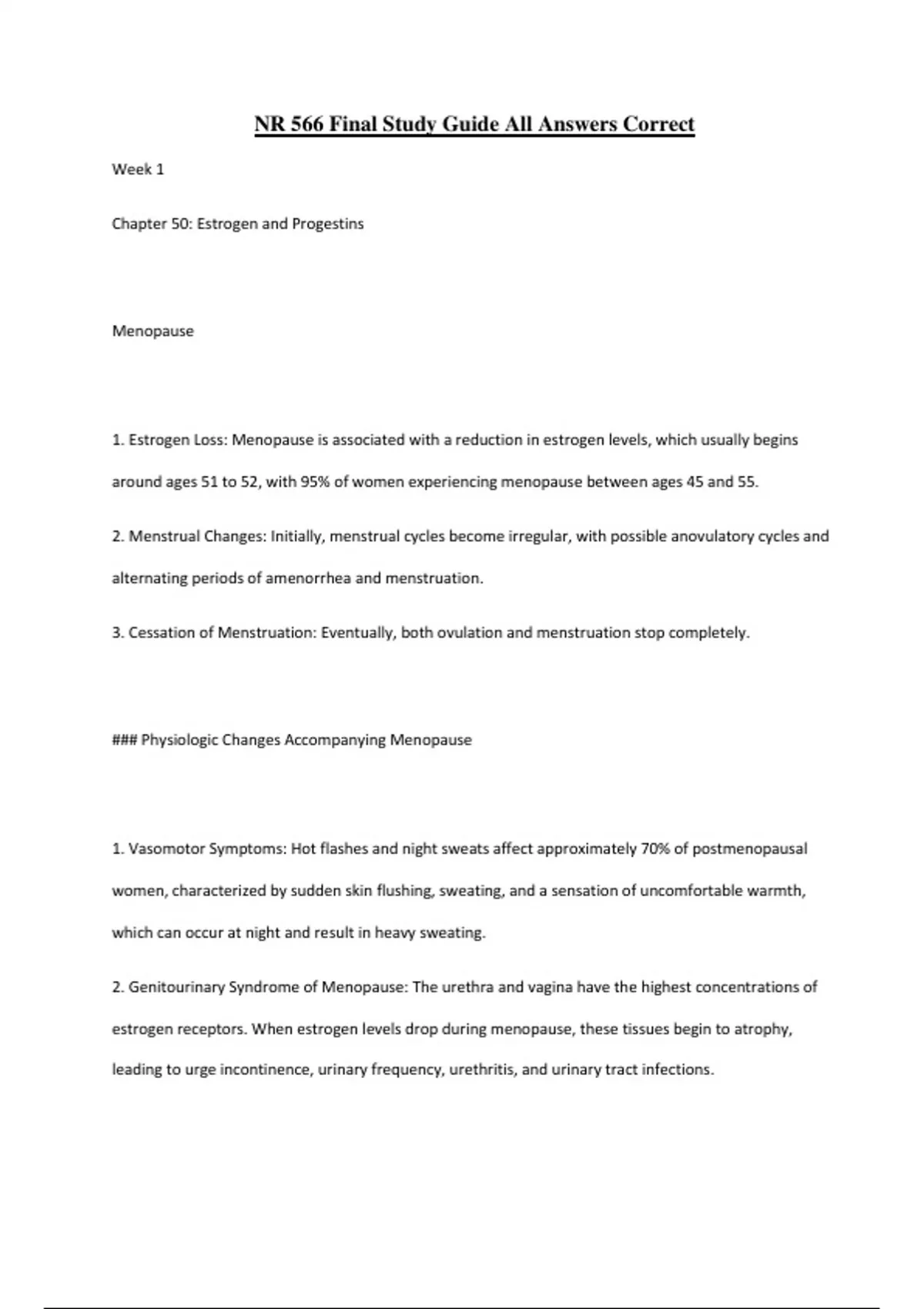 ### Physiologic Changes Accompanying Menopause