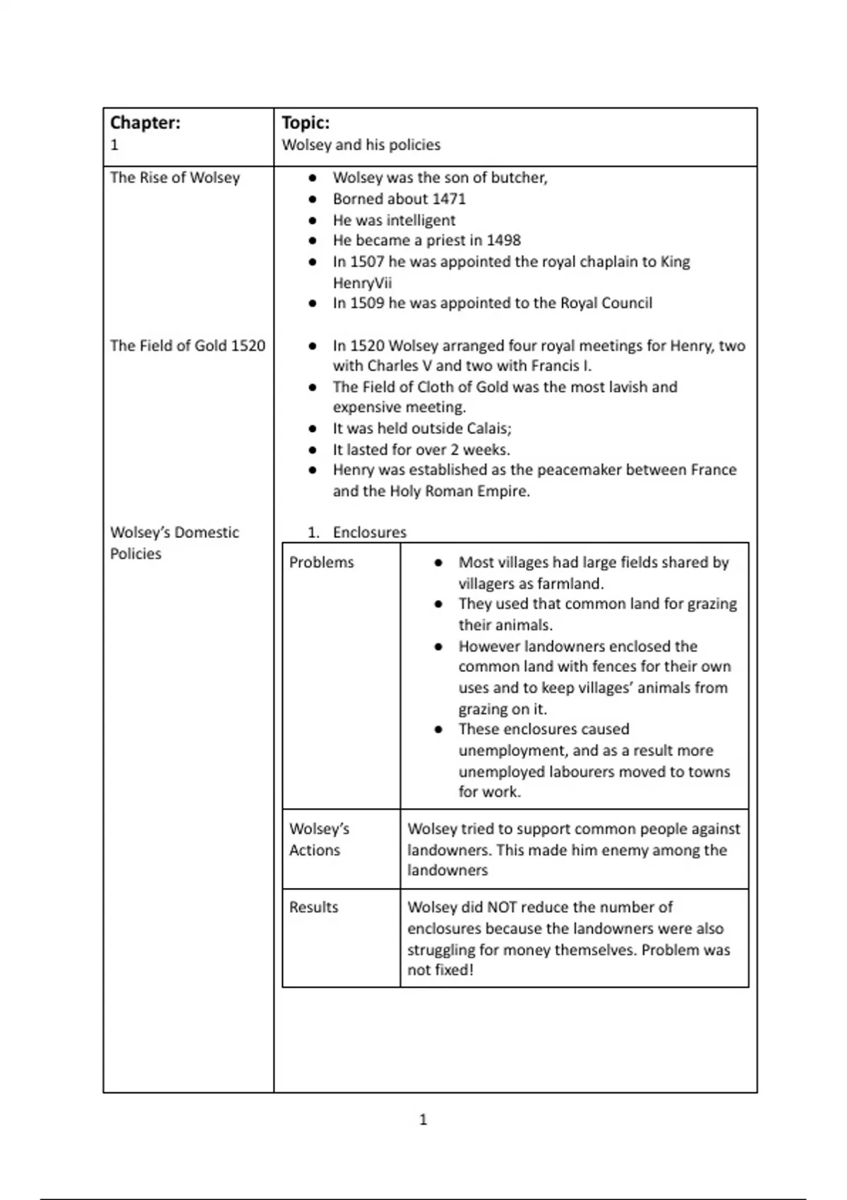 1 Wolsey and his policies