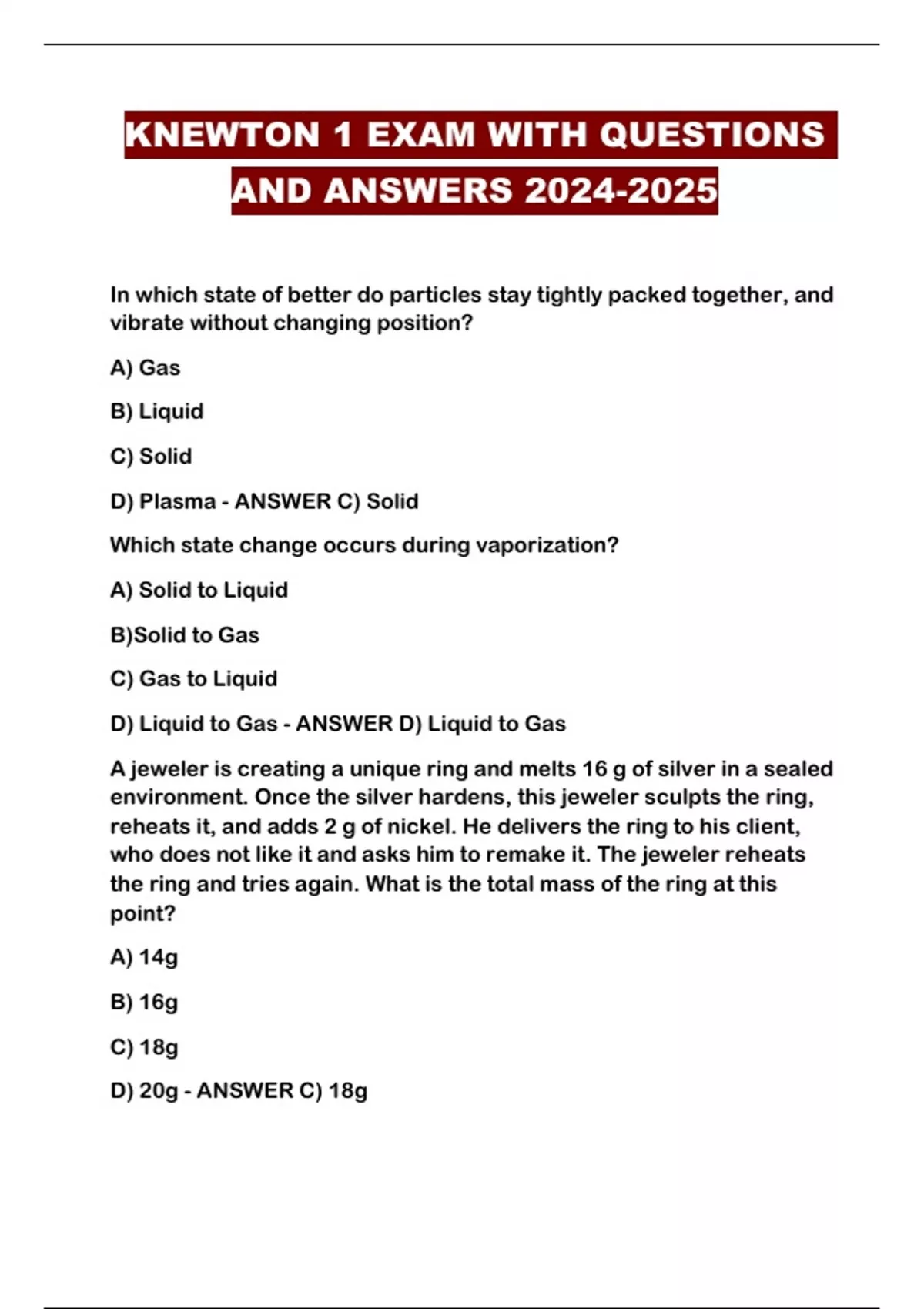 KNEWTON 1 EXAM WITH QUESTIONS AND ANSWERS ...